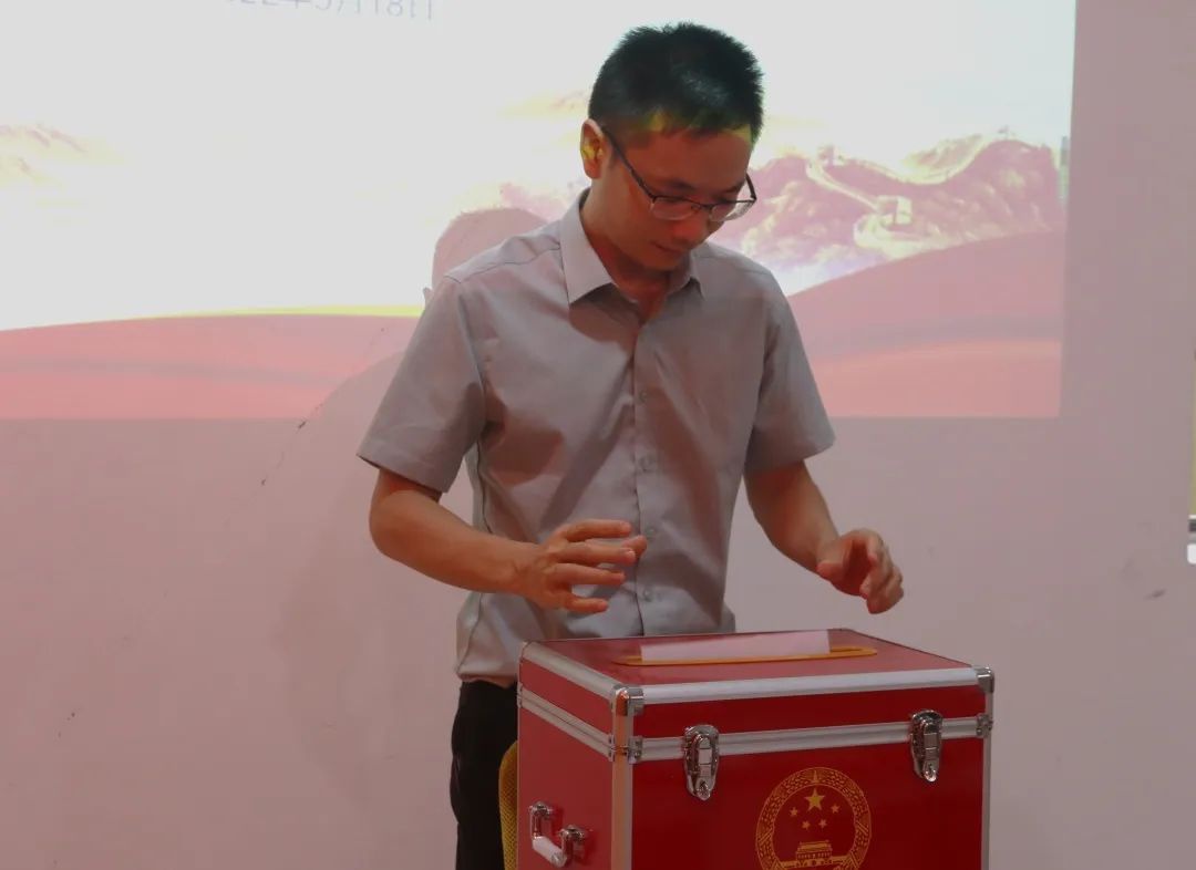 经党政联席会协商讨论,初步提名推荐任丙南教授、李艳教授、李卉妍书记、杨波副教授、陈小勇经理五人,李卉妍书记现场宣读《关于同意代表候选人预备入选名单的批复》,由工作人员向在场教职工分发选票,李卉妍书记介绍需注意事项,选举投票正常开始。