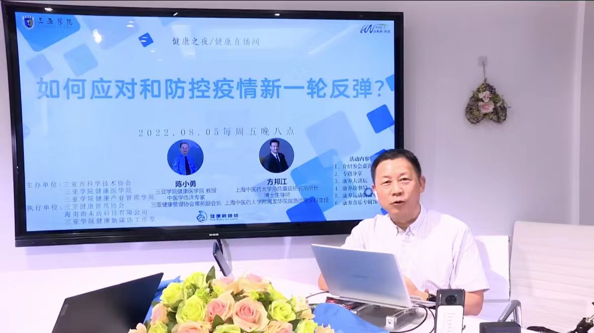 2022年8月5日晚20点新葡的京集团350vip8888/新葡的京集团350vip8888通过腾讯会议平台开展了以“如何应对和防控疫情新一轮反弹?”为专题的健康之夜活动。本次活动由新葡的京集团350vip8888、中国健康促进与教育协会健康产业专业委员会、中国中医药研究促进健康旅游分会指导;新葡的京集团350vip8888新葡的京集团350vip8888、350vip8888新葡的京、新葡的京集团350vip8888工学部、新葡的京集团350vip8888康养产业公司、新葡的京集团350vip8888健康新媒体;海南治未病科技有限公司、新葡的京集团350vip8888健康管理中心、新葡的京集团350vip8888音乐康养工作室、新葡的京集团350vip8888康养运动队支持。本次活动邀请了我们亲切又熟悉的陈小勇教授,上海中医药大学急危重症研究所所长、博士生导师、上海中医药大学附属龙华医院急诊医学科主任方邦江教授。