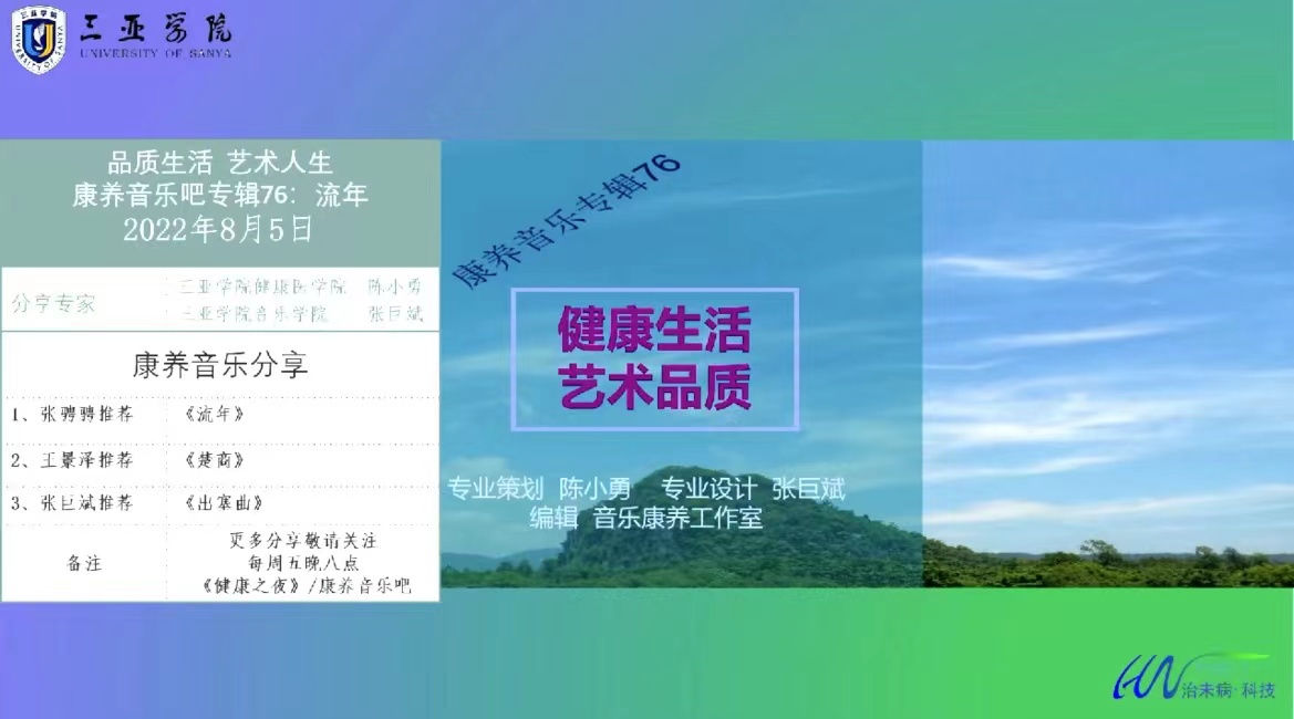 本期康养音乐吧与大家分享专辑76《流年》,希望大家可以放松身心,欣赏音乐。
