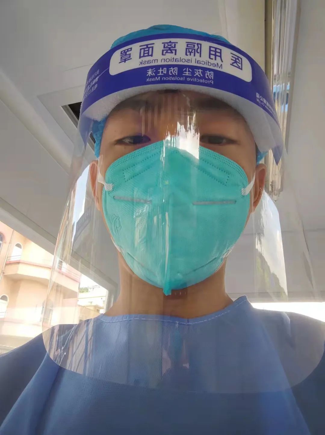 在我脱下防护服的时候,全身的衣服都被汗水浸湿,汗流浃背,衣服和裤子轻轻一拧都能拧出一滩水,让我深刻感受到抗疫人员的不易。