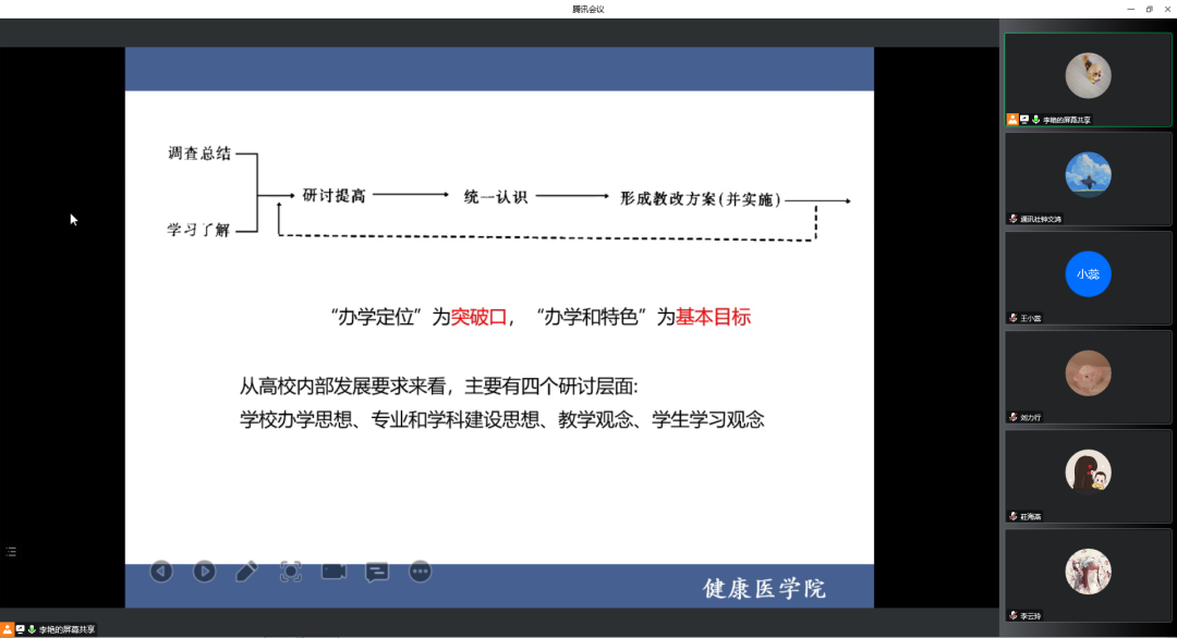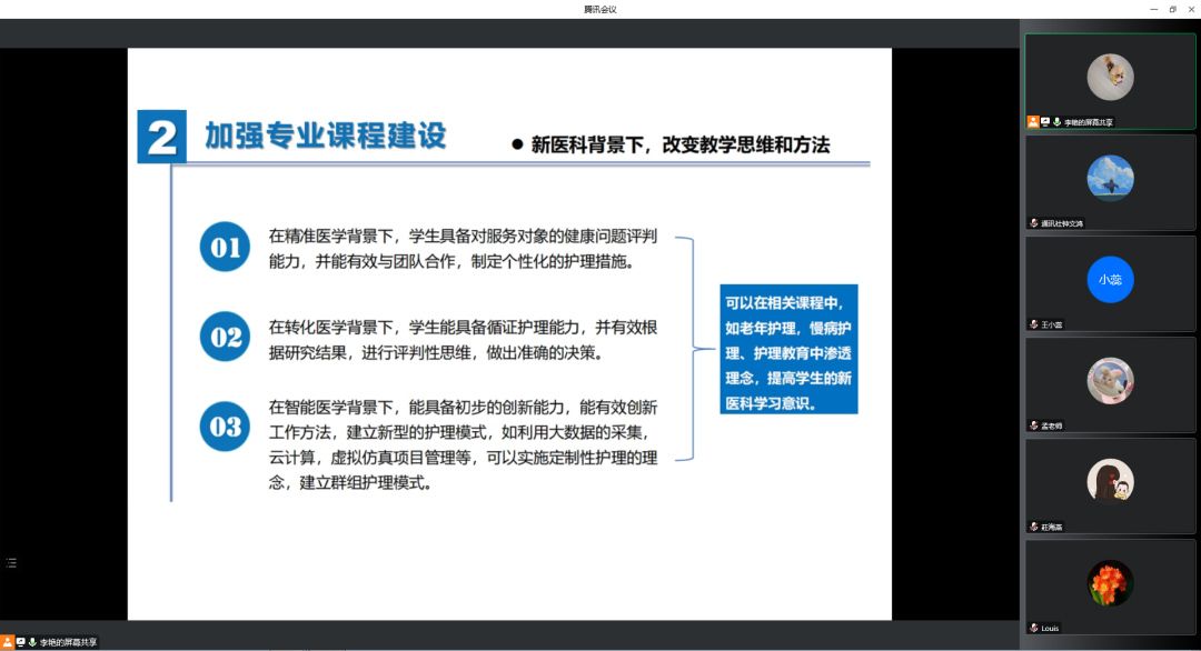 会议伊始由副经理李艳教授进行有关教学方面的发言,李艳教授认为老师们在教学中需要将“大思政融入”平时的教学中,需要在新医科的背景下改变教学思维和方法。