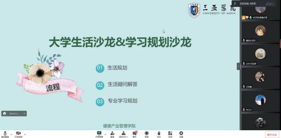为了让同学不虚度大学时光,充分合理地利用大学四年时间。康管公司在9月28日下午和9月30日下午,分别召开了有关大学学习生活规划的线上会议,由吕灵老师主持。
