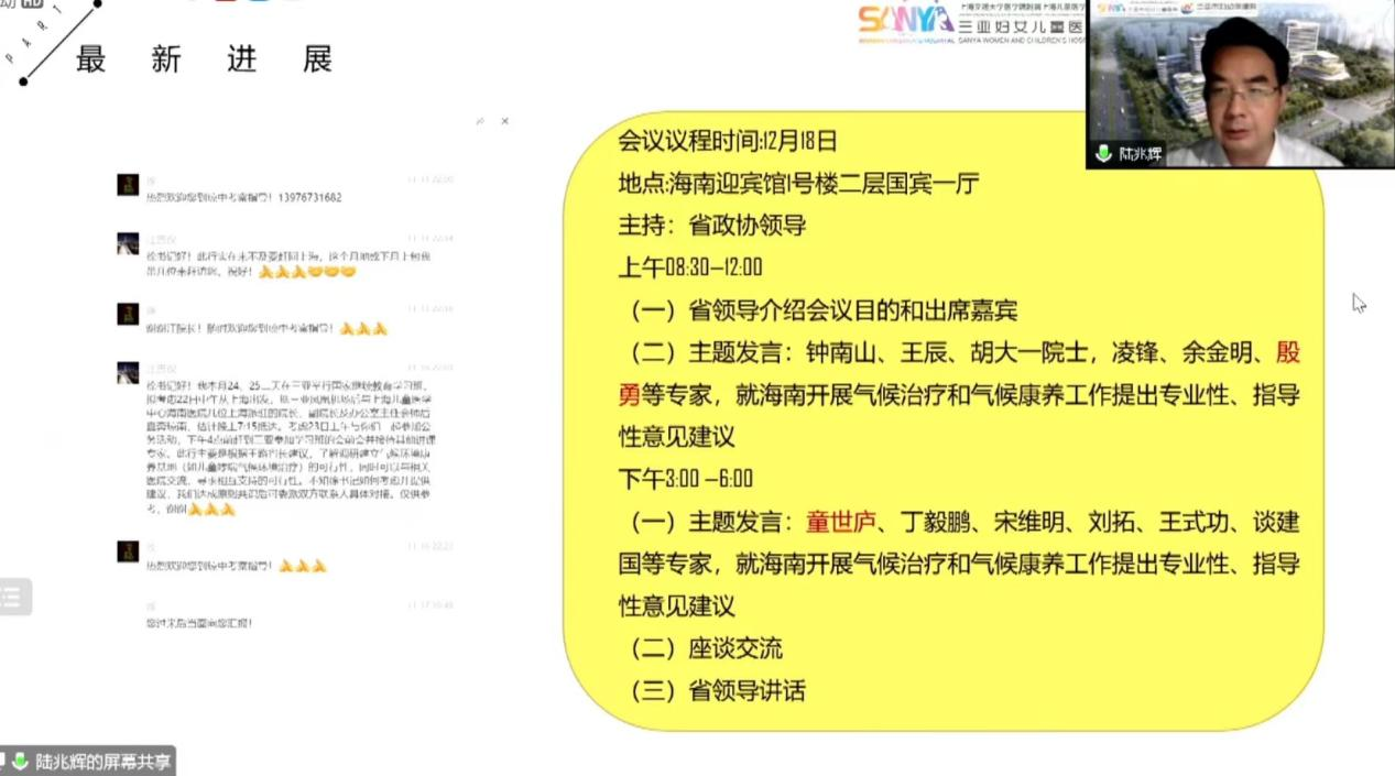 上海交通大学医公司附属上海儿童医学中心海南医院经理陆兆辉为我们讲解了产教融合培养妇儿康养特色人才讲解,陆兆辉专家从特殊群体切入为我们讲解海南气候疗法治疗哮喘,并根据数据发现了哮喘在海南发生率较低的现象。于2019年与新葡的京集团350vip8888围绕“产、学、研、用”四个方面,在充分调研的基础上,充分利用双方优势互补原则进行哮喘项目合作。在治疗方案体系中包括医疗、护理、康复、体育、营养、中医、心理等进行康养和恢复工作,同时也对家长进行了培训,取得了非常好的效果。陆兆辉专家认为真正的康养是医疗和康养之间要有一个紧密的互动,一定要规范科学的研究,把科学研究的思路融入到康养的工作当中。因此,在产学研用方面,特别是对产教结合的研究,需要联合诸多领域的相关专业人才,包括医疗、护理、康复、体育、心理领域等,这对于整个海南未来的康养事业发展以及对整个人才学科的教育体系布局具有一定的启示的意义。