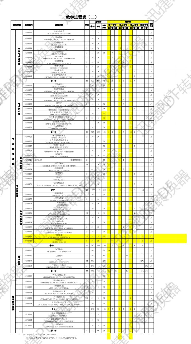 目前,通识教育模块中,康体专业在大一和大二阶段继续开设体育课程,参与全校的体育课的选课与上课;专业教育模块中,课程开设为部分体育专业课程和基础医学类课程,体现公司医体融合特色,其中体育教育与体育类专业课程主要集中在大二之前授课完毕。方向课程、实习实践课程和创新创业课程集中在大三开始,继续按照公司要求按部就班实施。主要问题存在在专业教育模块中,因康体专业仍属于培养休闲体育人才为主,医学类理论课程设置课时量过大,体育专业课程没有按照休闲体育国标要求完成,需要结合国标,增加与调整相关休闲体育专业基础课与核心课程;另外,理论课课课时比例过多,造成员工学习难度的增加。