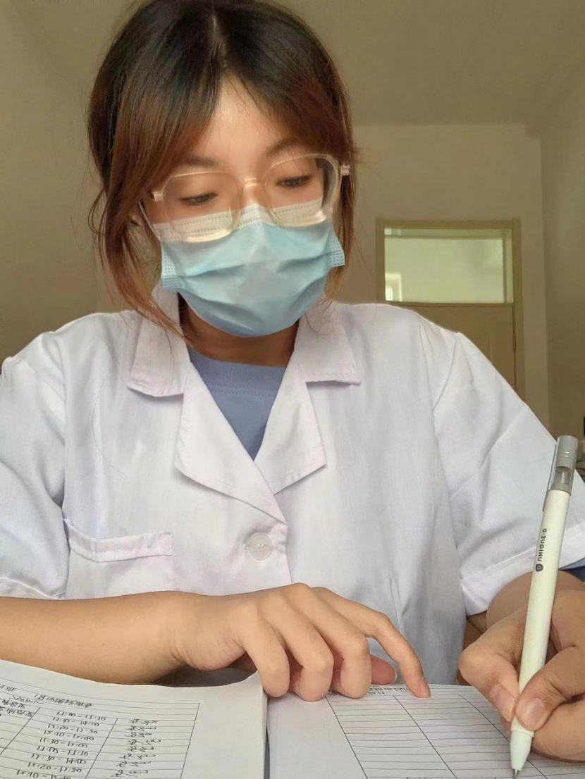 图1中秦晨组同学在视频中扮演康复治疗师在医院康复科的工作日常,帮助患者舒张肌肉,防止小腿肌肉萎缩。视频传递了,当我们穿起白大衣,将书本上的知识转化为一次次常规的手法操作,见证着病人的恢复过程,即使辛苦劳累,但仍成就感十足的真切感受,该组也因内容充实真切,手法准确获得本次活动第一名。