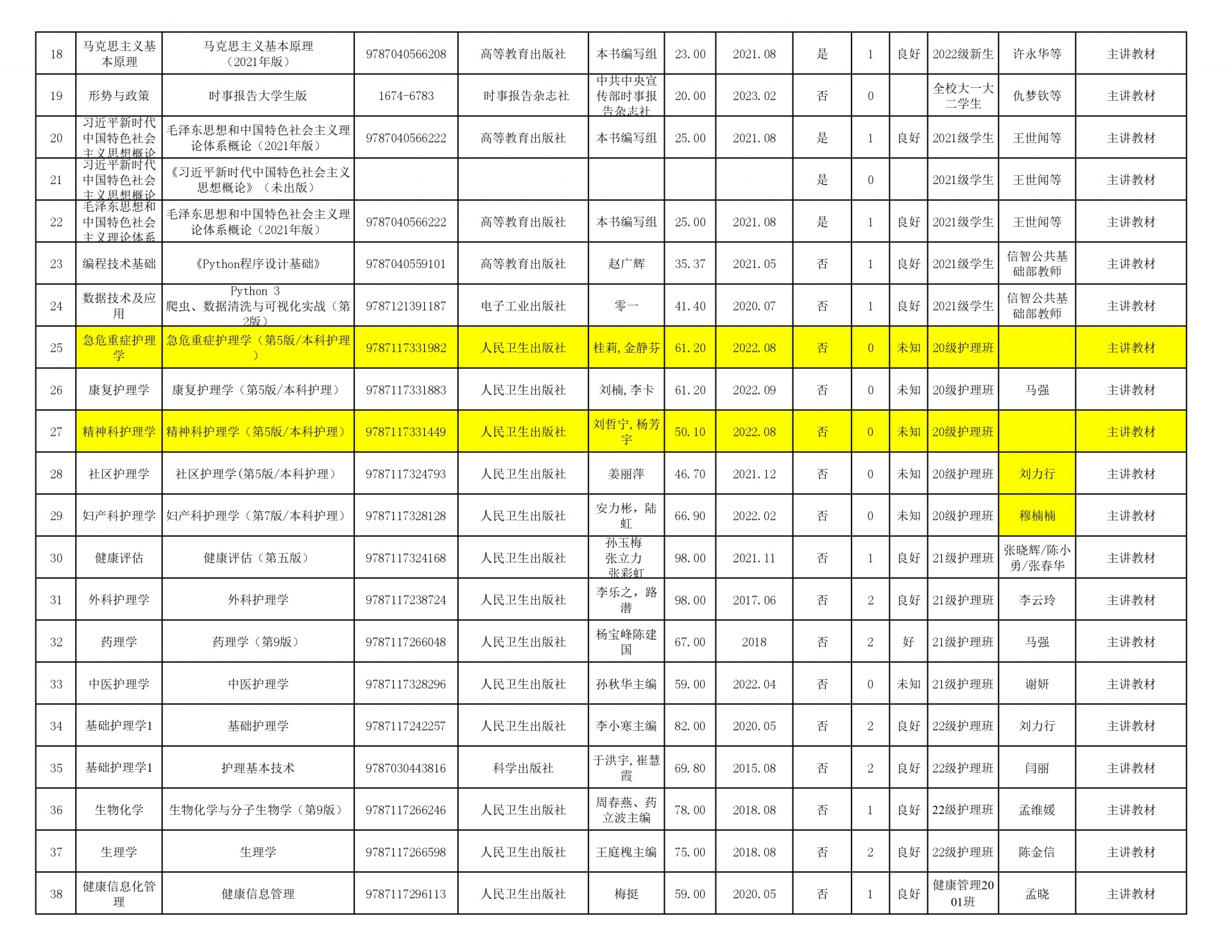 新葡的京集团350vip88882022-2023学年春季学期教材使用目录汇总表