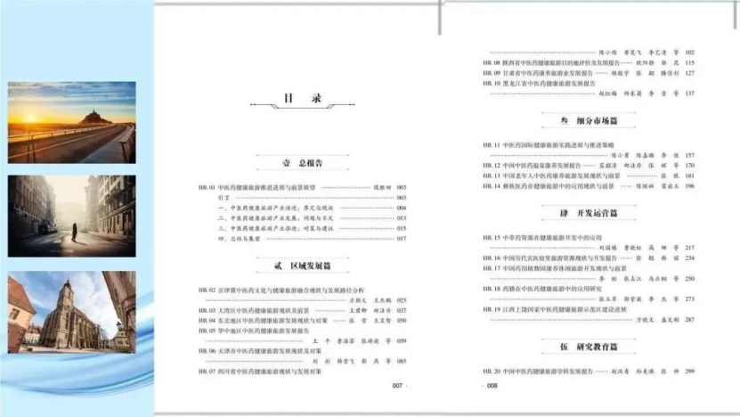 第一部分,梳理了中医药健康旅游起源演进、产业界定研究教育等产业实践以及发展现状,分析总结了中医药健康旅游在发展过程中存在的机制、产品、宣传、人才等方面的问题,并提出促进产业融合、发挥品牌特色、注重宣传营销、加快人才培养等针对性的对策建议。