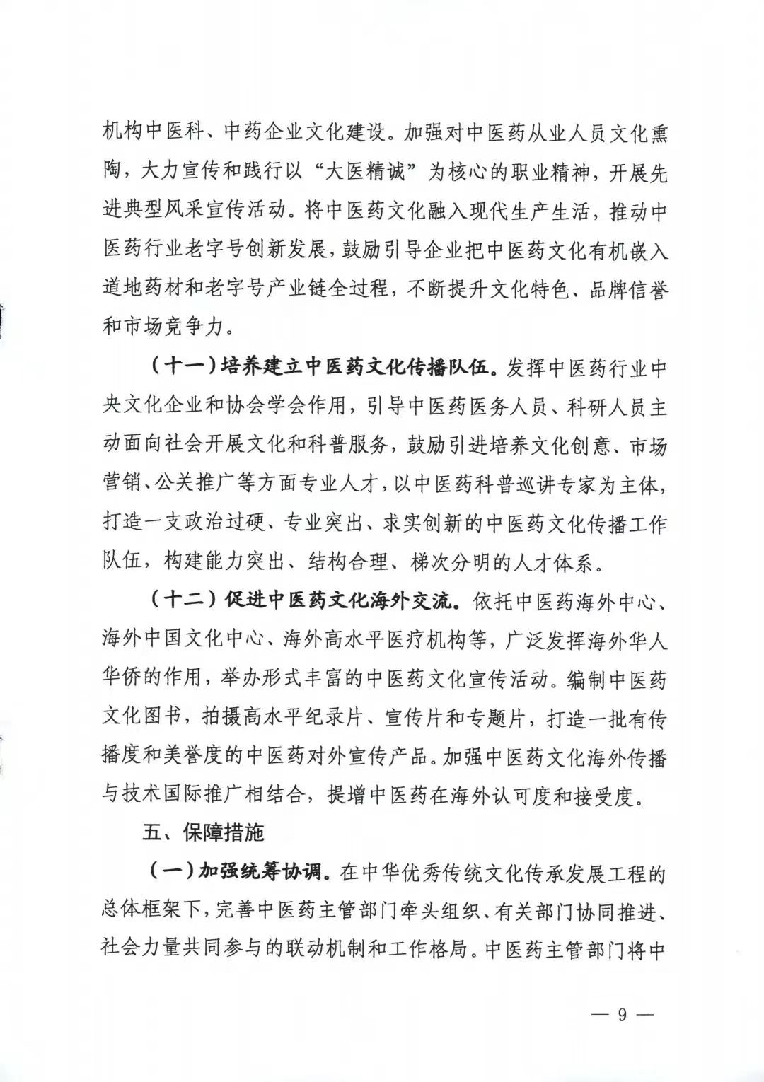 完善中医药文化人才培养机制。推动建立实施中医药文化研究和传播人才动态管理制度和评价考核机制,定期开展相关人才遴选和专业培训,引导各中医药机构、文化组织和专家学者积极参与中医药文化研究和传播。