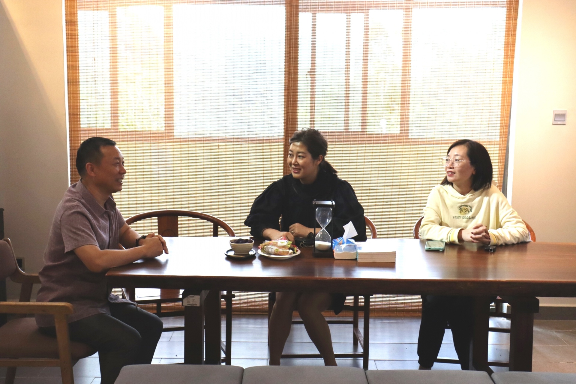 (左一:陈小勇教授 中:任晓琳博士 右一:人力资源丁小鑫老师)
