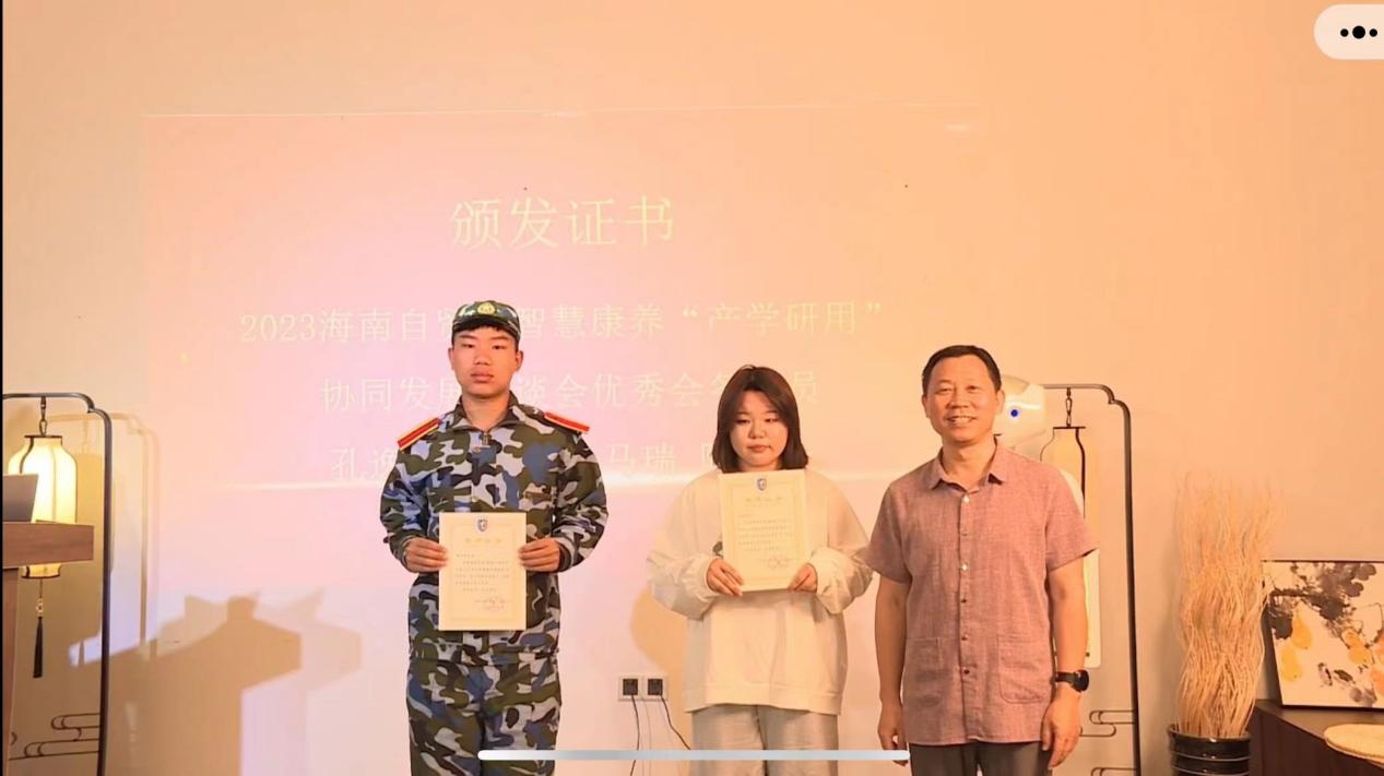 最后热烈祝贺海南自贸港智慧康养“产学研用”协同发展座谈会,暨音乐康养专业委员会成立会议圆满结束,由陈小勇教授颁发2023海南自贸港智慧康养产学引用系统发展座谈会优秀筹备工作人员奖状。祝贺获得奖状的优秀筹备工作人员,每一次活动的圆满成功都少不了工作人员的付出。同时祝愿大家以强健的体魄、振奋的精神、饱满的热情圆满完成军训任务。
