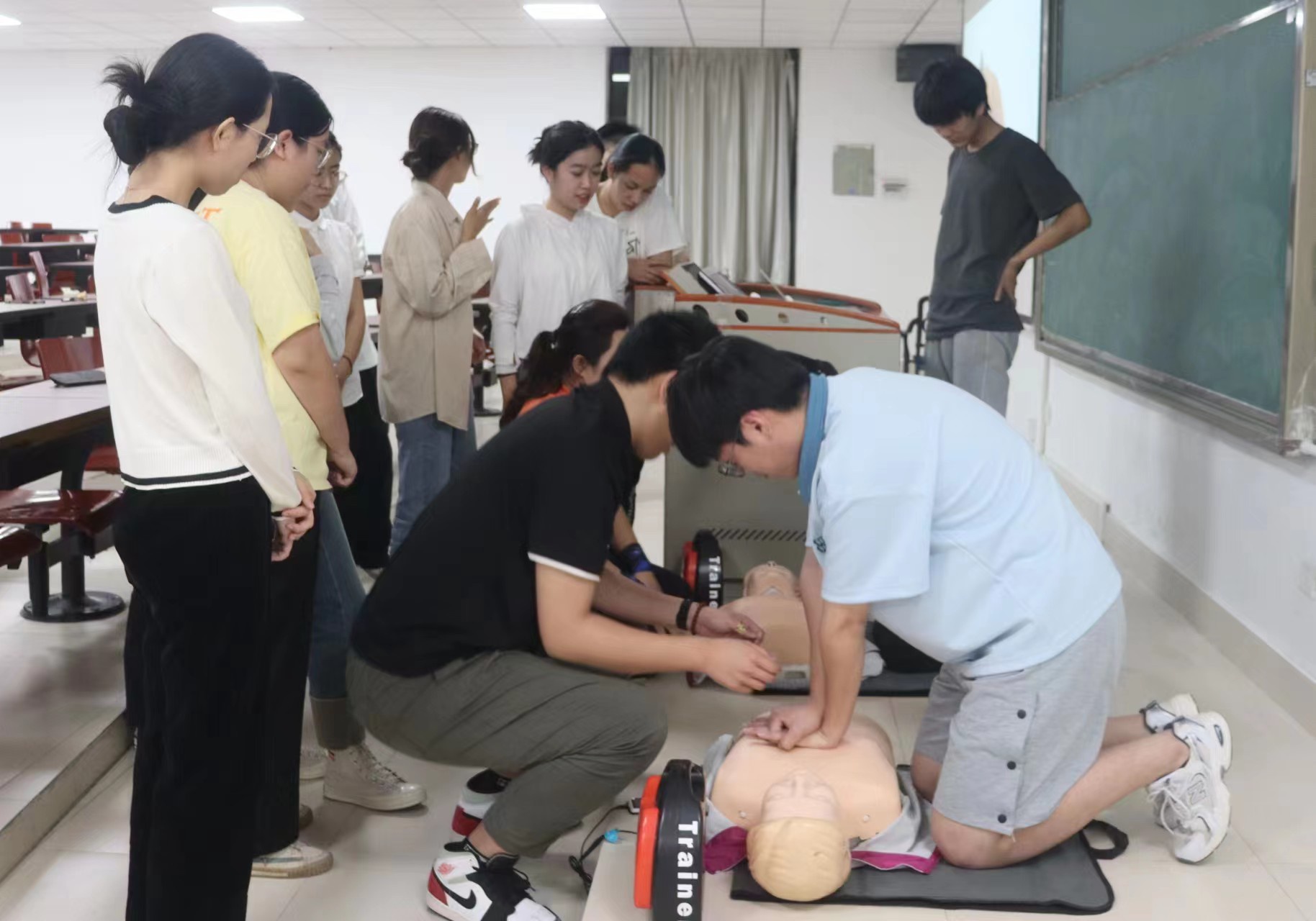 (同学们进行“心肺复苏”模拟操作)