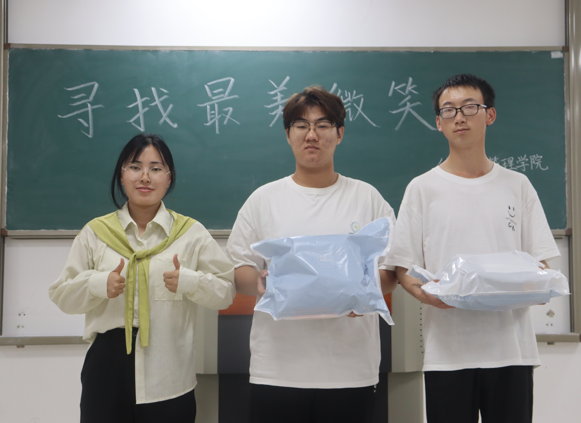 接下来就是激动人心的一刻,颁发我们期待已久的奖品。每一个获奖的萌新们都拿到属于自己的奖品,本次奖品不仅是给获奖同学们的奖励,也是对本次最美微笑活动最大的支持。