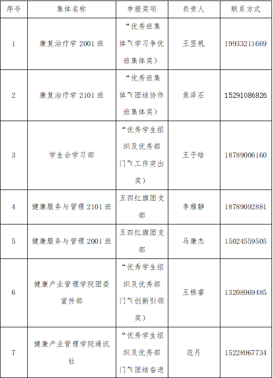 推荐康复2001、康复2101参评优秀班集体;