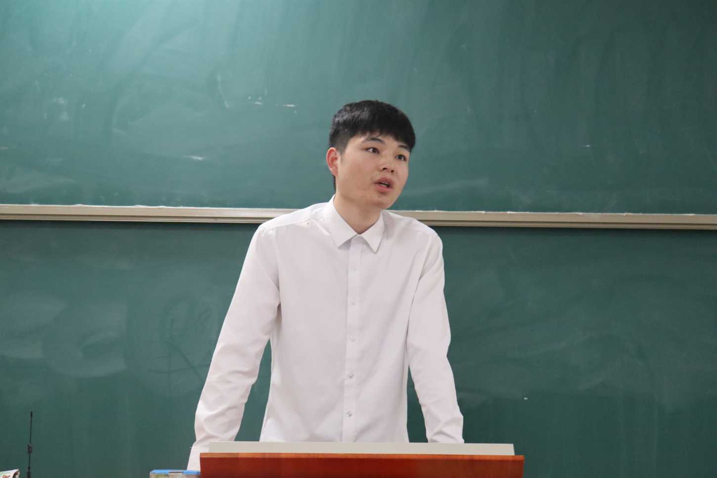 第一位上台给大家进行分享的是康体1901梅博弘学长,他成功上岸了温州大学的体育教育专业。学长分享了自己考研时各科学习的方法,如何在面对困难时正确的调整自己的心态。在备考期间他一直以好记性不如烂笔头的心态努力坚持,并在最终取得如愿以偿的结果。