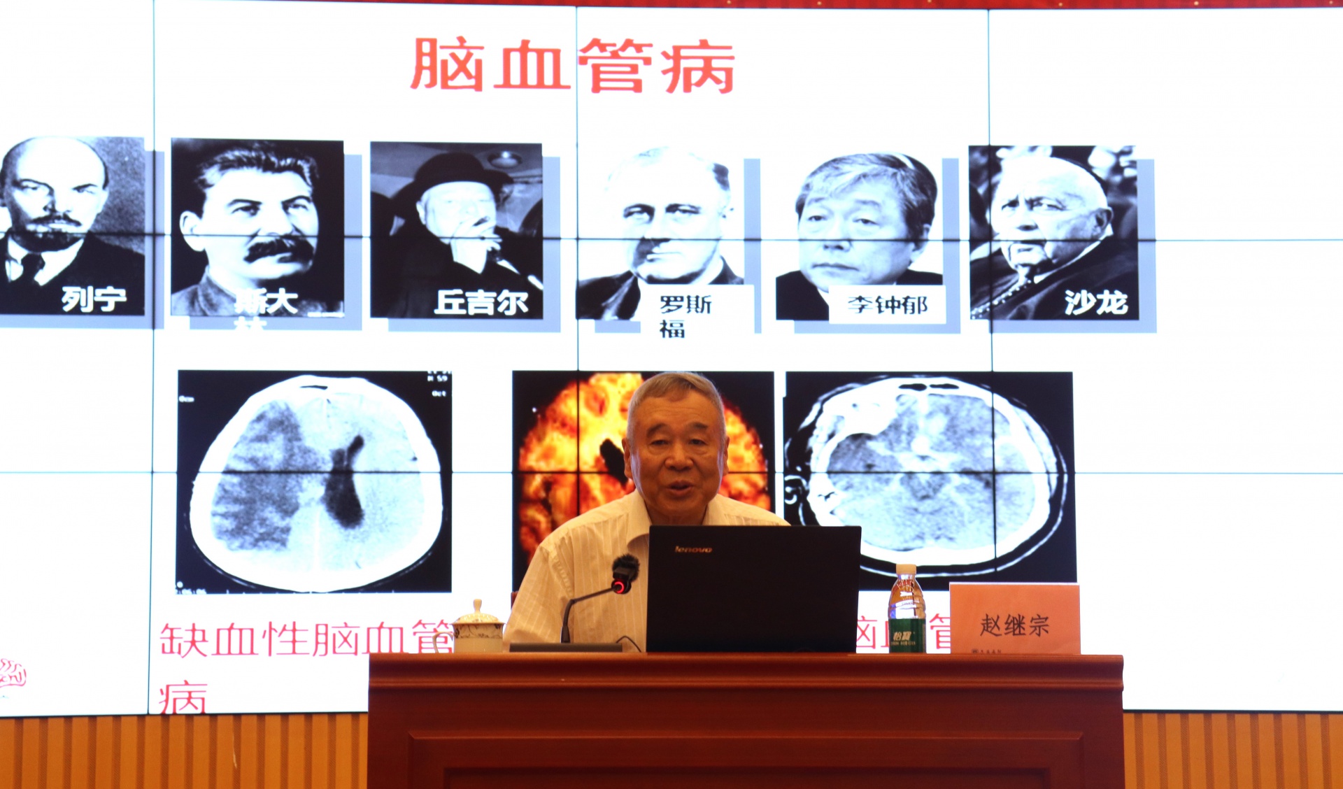 赵继宗院士先用患脑血管疾病的名人引入主题脑血管,紧接着用“身之娇子”来形容心血管,用各种数据向同学们说明了脑血管的重要性,又展示了脑动脉环路图向同学们讲解了脑血管的对侧代偿供血,让同学了解到了脑血管的“鬼斧神工”。