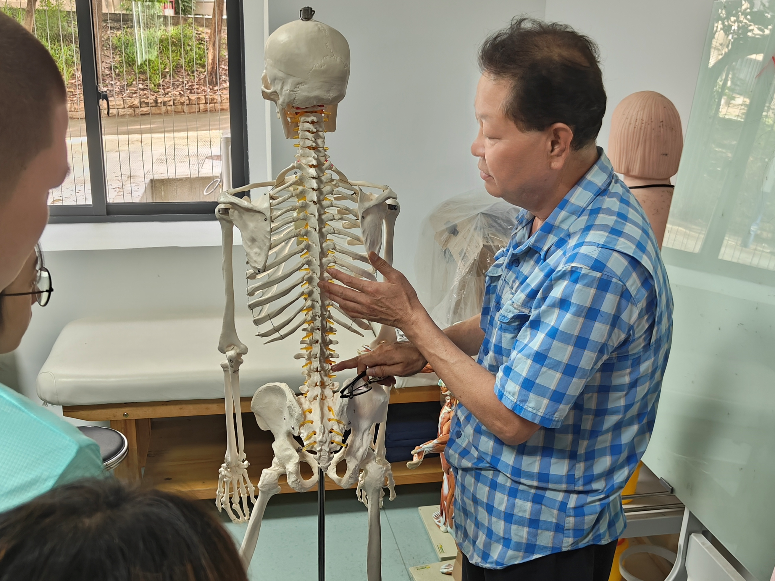 姚晶鑫老师提醒同学们,要尽心复习医员工誓言与守则,并带领大家复习了推拿原则,气功练习,各类推拿手法,保健手法。