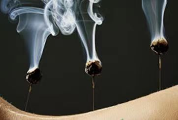 艾炷灸:用艾绒先做成圆锥形的艾炷。直接灸是把艾炷直接置放在皮肤上施灸,可根据施灸程度的不同,灸后局部起泡化脓,愈后留有瘢痕(瘢痕灸),灸后局部不起泡化脓,愈后不留有瘢痕(无瘢痕灸)。间接灸是在艾炷与皮肤之间隔上某种药物而施灸,如隔姜灸、隔蒜灸、隔盐灸。