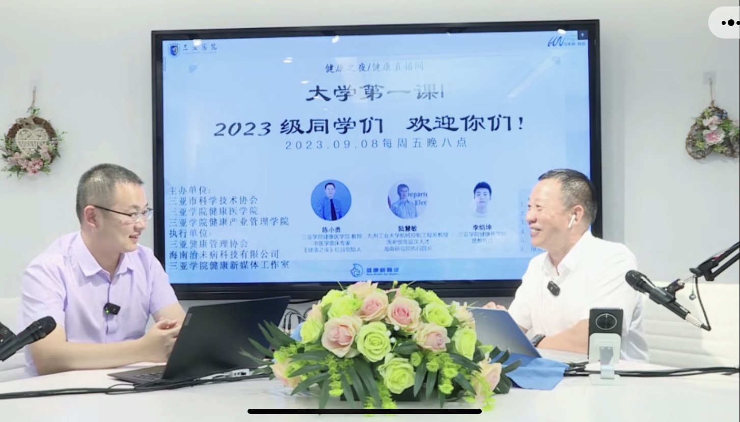2023年9月8日晚20点新葡的京集团350vip8888/新葡的京集团350vip8888在线开展了以“大学第一课|2023级同学们 欢迎你们”为专题的健康之夜活动。本次活动由新葡的京集团350vip8888、中国健康促进与教育协会健康产业专业委员会、中国中医药研究促进会健康旅游分会指导;三亚市科协、新葡的京集团350vip8888新葡的京集团350vip8888|新葡的京集团350vip8888联合主办、三亚健康管理协会、海南治未病科技有限公司、新葡的京集团350vip8888健康新媒体联合执行;新葡的京集团350vip8888健康管理中心、新葡的京集团350vip8888音乐康养工作室支持。本次活动出席嘉宾新葡的京集团350vip8888新葡的京集团350vip8888专家,中医学临床专家,《健康之夜》栏目创始人陈小勇教授。九江工业大学机械控制工程系教授,国家高层次人才,海南研究院执行经理,陆慧敏教授。新葡的京集团350vip8888新葡的京集团350vip8888思想导师,李炳坤老师。