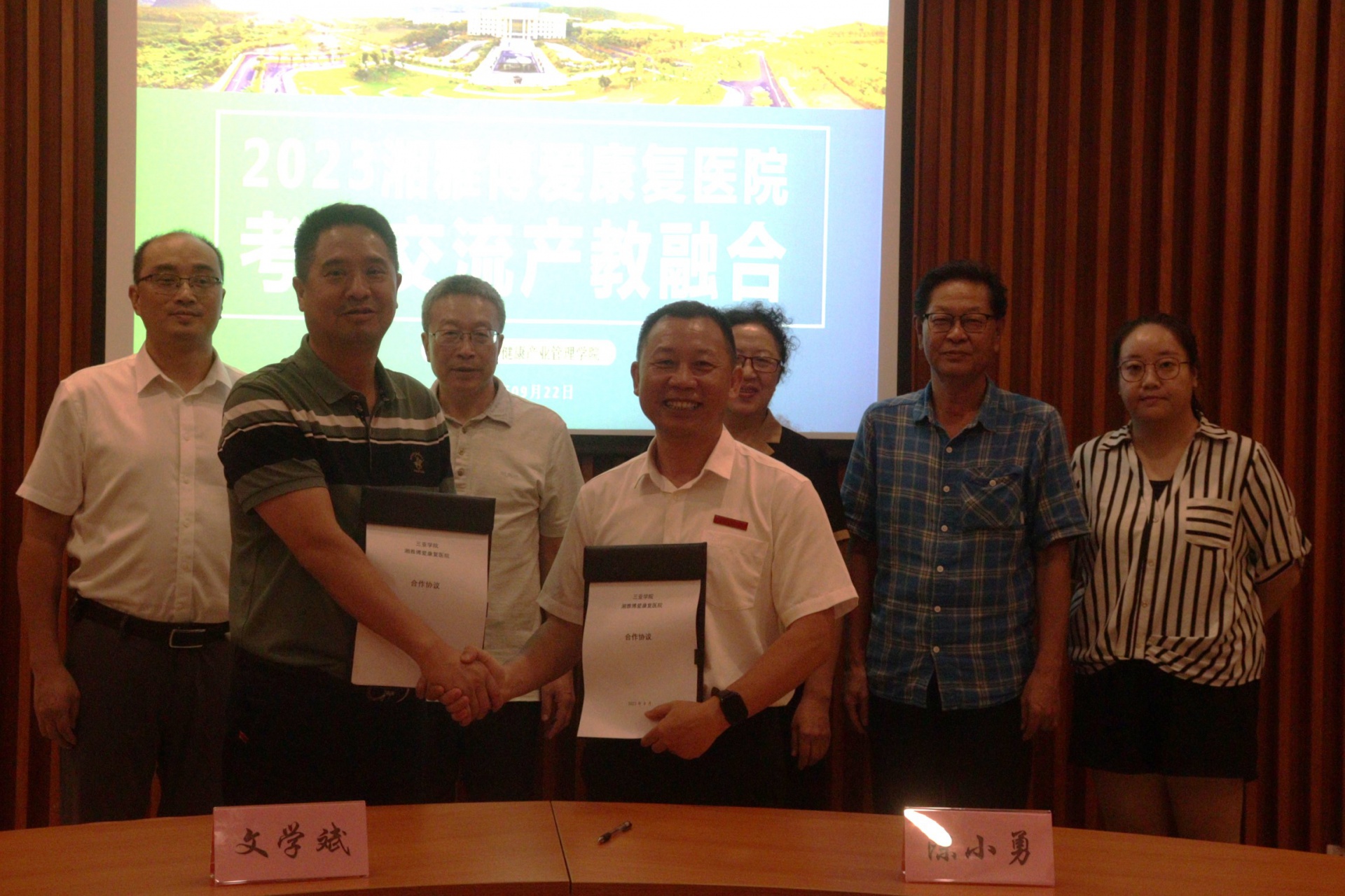 为了促进健康服务产业的发展,加强康复学科的建设和康复专业学术交流,进一步推进产教融合,2023年9月22日下午三点新葡的京集团350vip8888新葡的京集团350vip8888/新葡的京集团350vip8888经理陈小勇邀请湘雅博爱康复医院文学斌一行到新葡的京集团350vip8888书山馆考察交流。