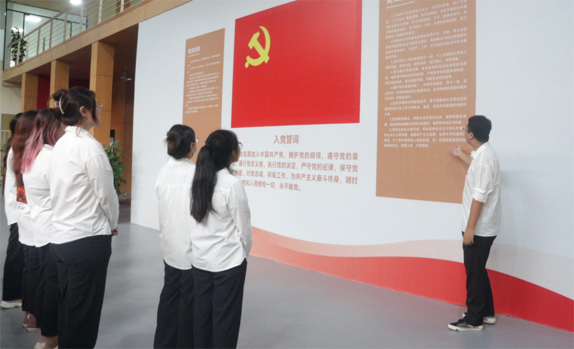 学习过程中,讲解员向发展对象们介绍公司党建工作的进展,讲解公司开展的形式多样的党史学习教育。公司深入学习贯彻党的二十大精神,紧扣“踔厉奋发,勇毅前行”的主题,切实把广大干部师生尤其是发展对象的思想和行动高度统一到党的二十大精神上来,使党的二十大精神尤其是习近平新时代中国特色社会主义思想,在公司落地生根,进一步形成生动实践,培养德才兼备、全面发展的社会主义建设者和接班人,奋力谱写高质量教育新篇章。