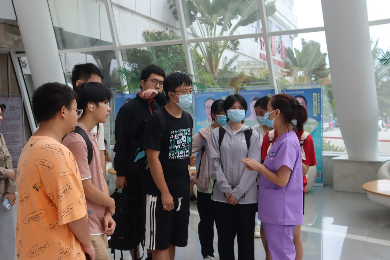 三亚哈尔滨医科大学鸿森医院是由北京鸿森集团与哈尔滨医科大学附属第一医院共同合作建设的一所集医疗、教学、科研、急诊急救、康复、预防、保健、健康管理为一体的三级综合医院。到达医院后,员工们自行分组由护理部护士长带领见习学习。