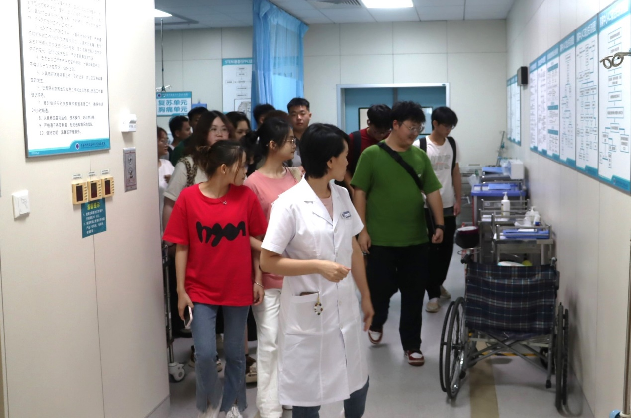 (带教老师带领员工们参观医院部分科室)