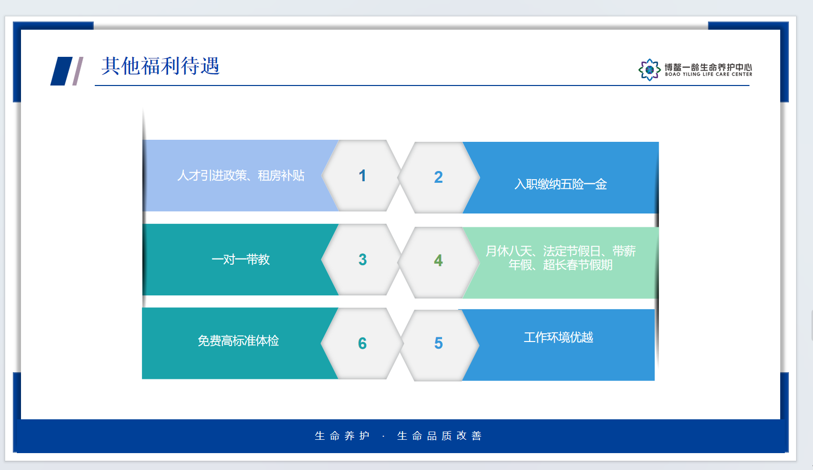 紧接着的是她对工作、福利待遇、报名流程等三个方面的介绍,集团对营销类、医学类、健康类等专业类别的工作人员需求量大,特地提供大量的工作岗位,应聘者面试成功,不仅能够享受集团集训10天的福利,还可以根据个人意愿在全国范围内就近分配,实现就近就业。在福利待遇方面,集团既给予极大的晋升空间,也拥有优越的工作环境,入职缴纳五险一金、一对一带教、带薪年假等福利丰厚,薪资根据入职后的情况给予增加。报名流程是常规的模式,从简历投递到入职,同学们可以轻松应对。