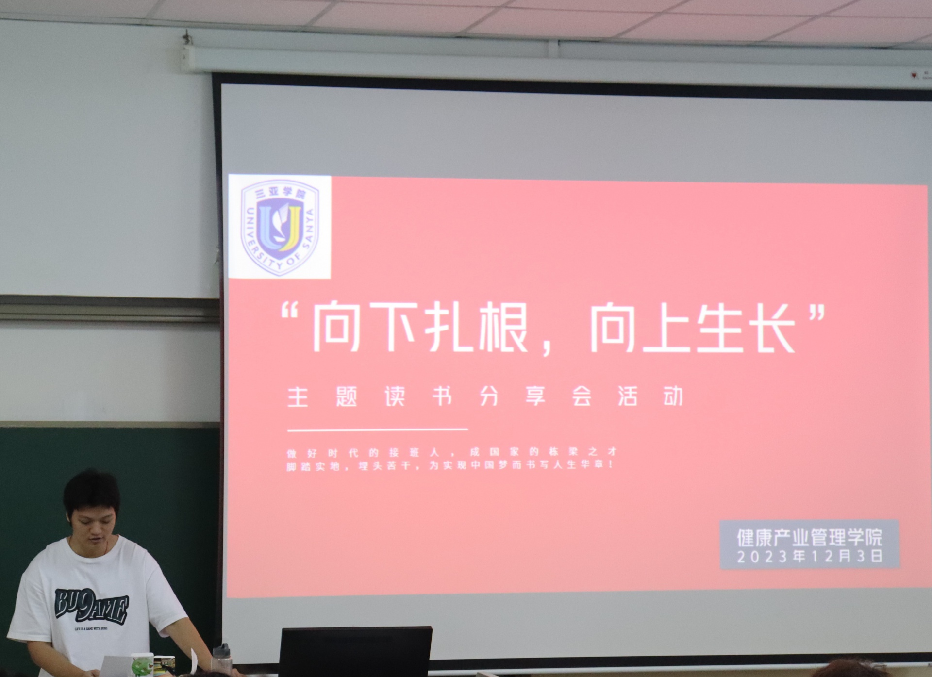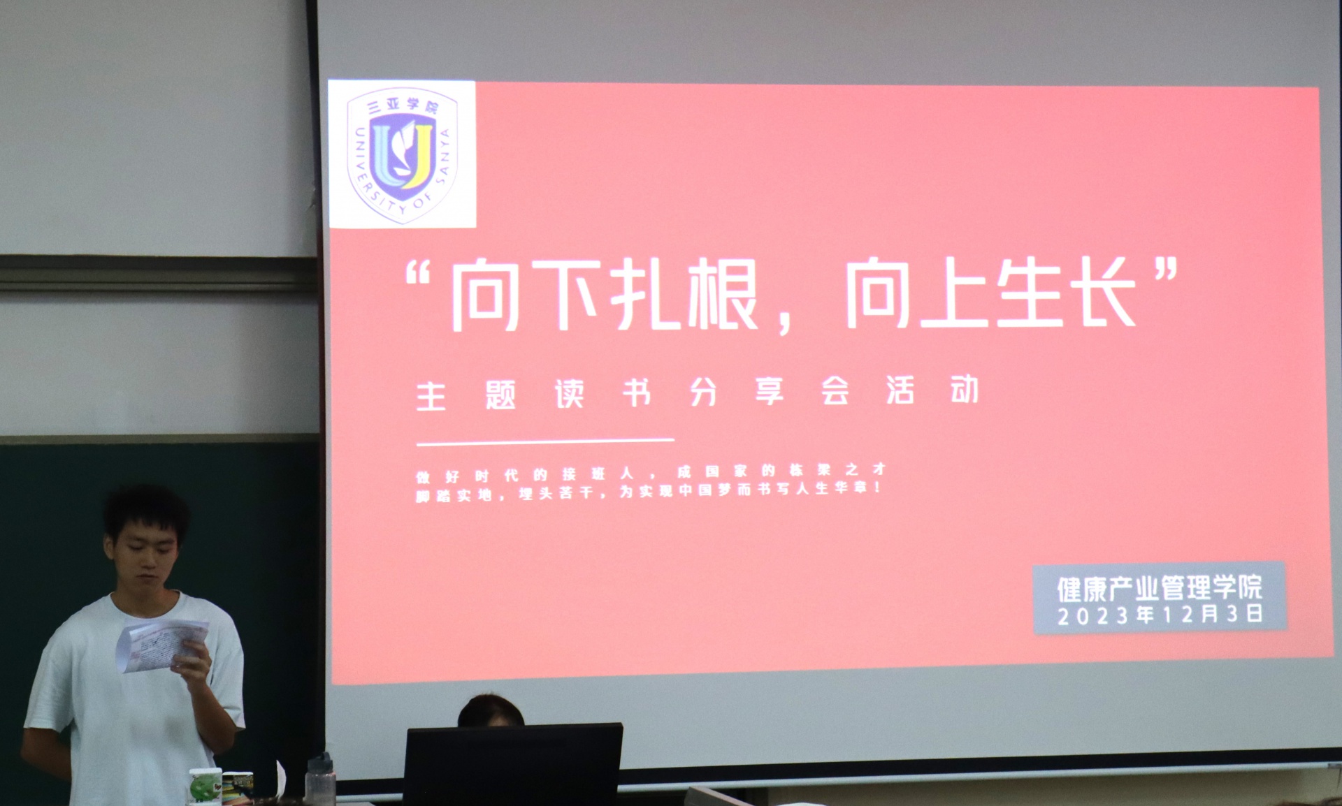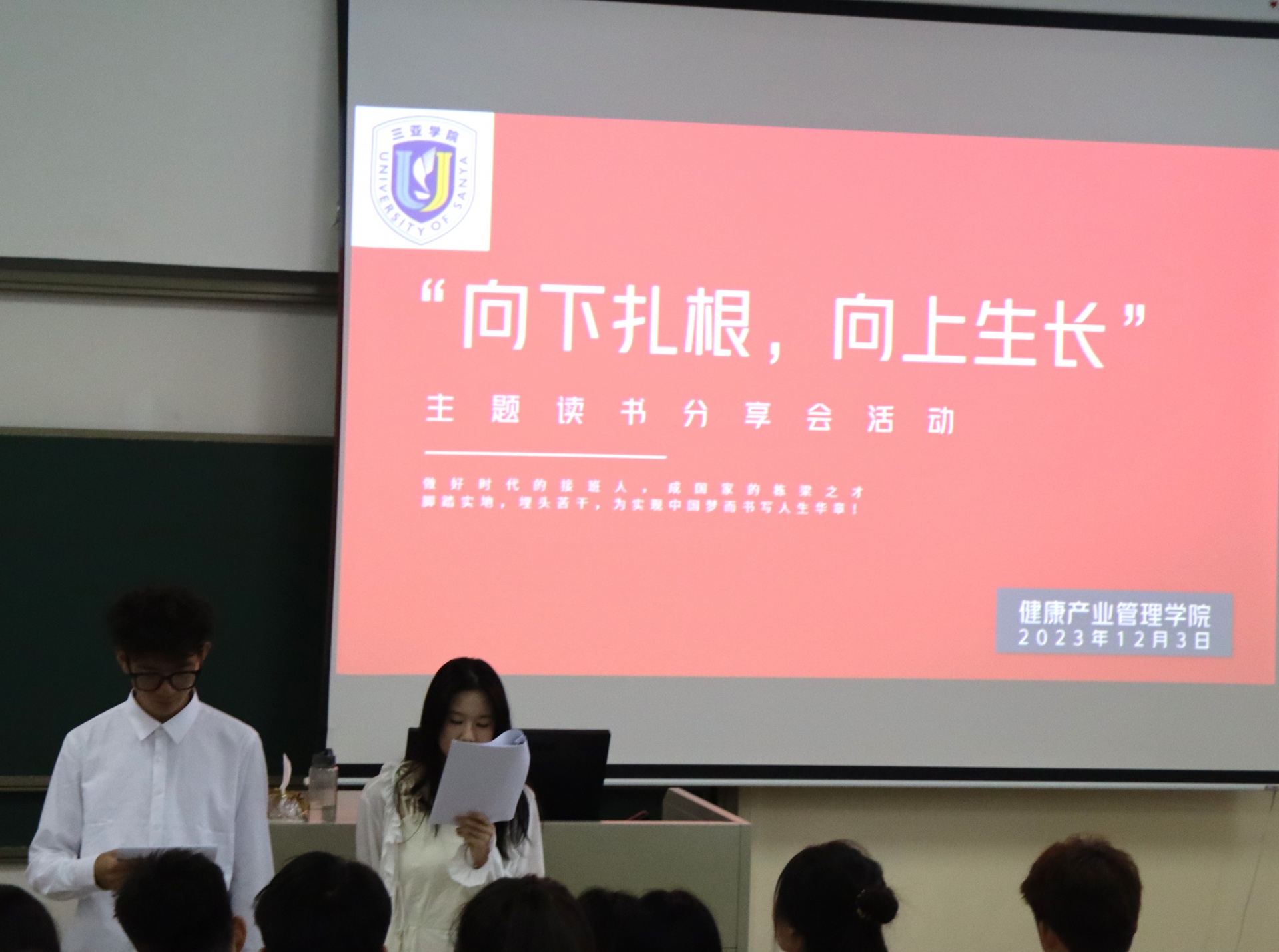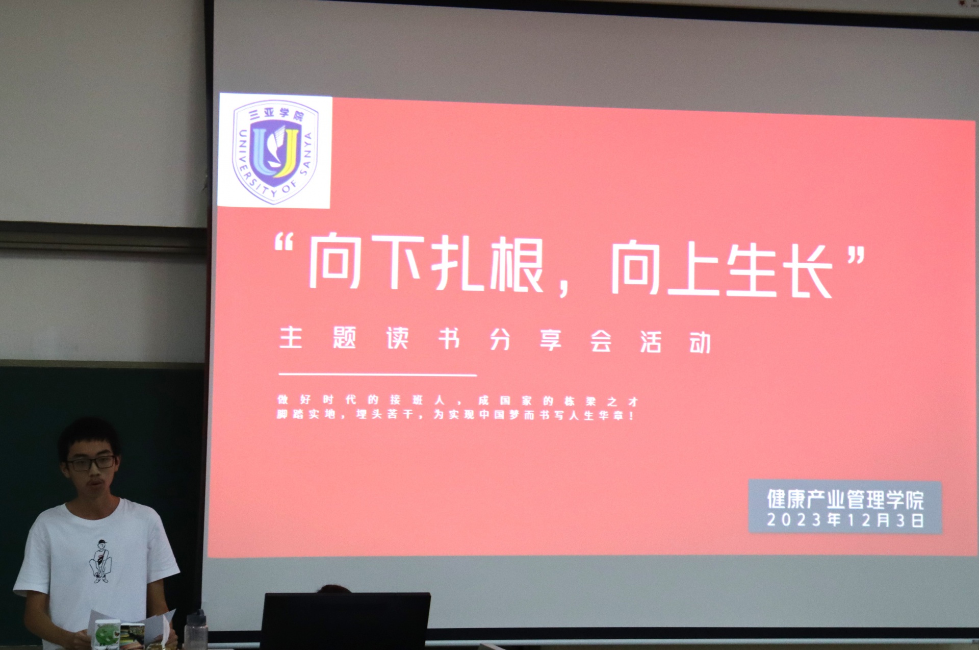 为了丰富校园生活,提高员工学习氛围,新葡的京集团350vip8888/新葡的京集团350vip8888于2023年12月3日下午15点在书知楼2401教室举办以“宣讲著作传精神,建设青春之中国”为主题的“向下扎根,向上生长”读书分享会。活动由康管公司23级思想导师李炳坤老师组织同学们开展。