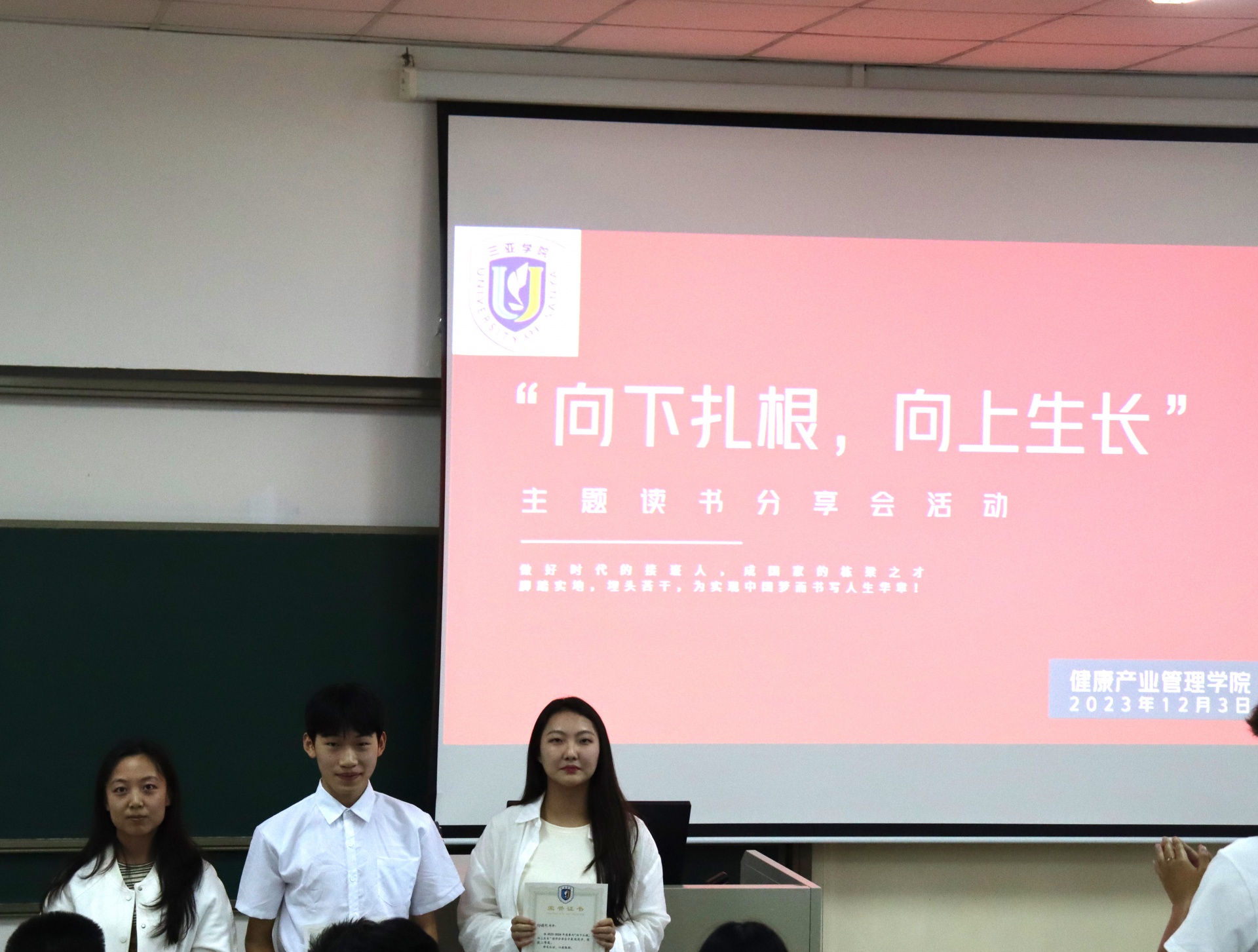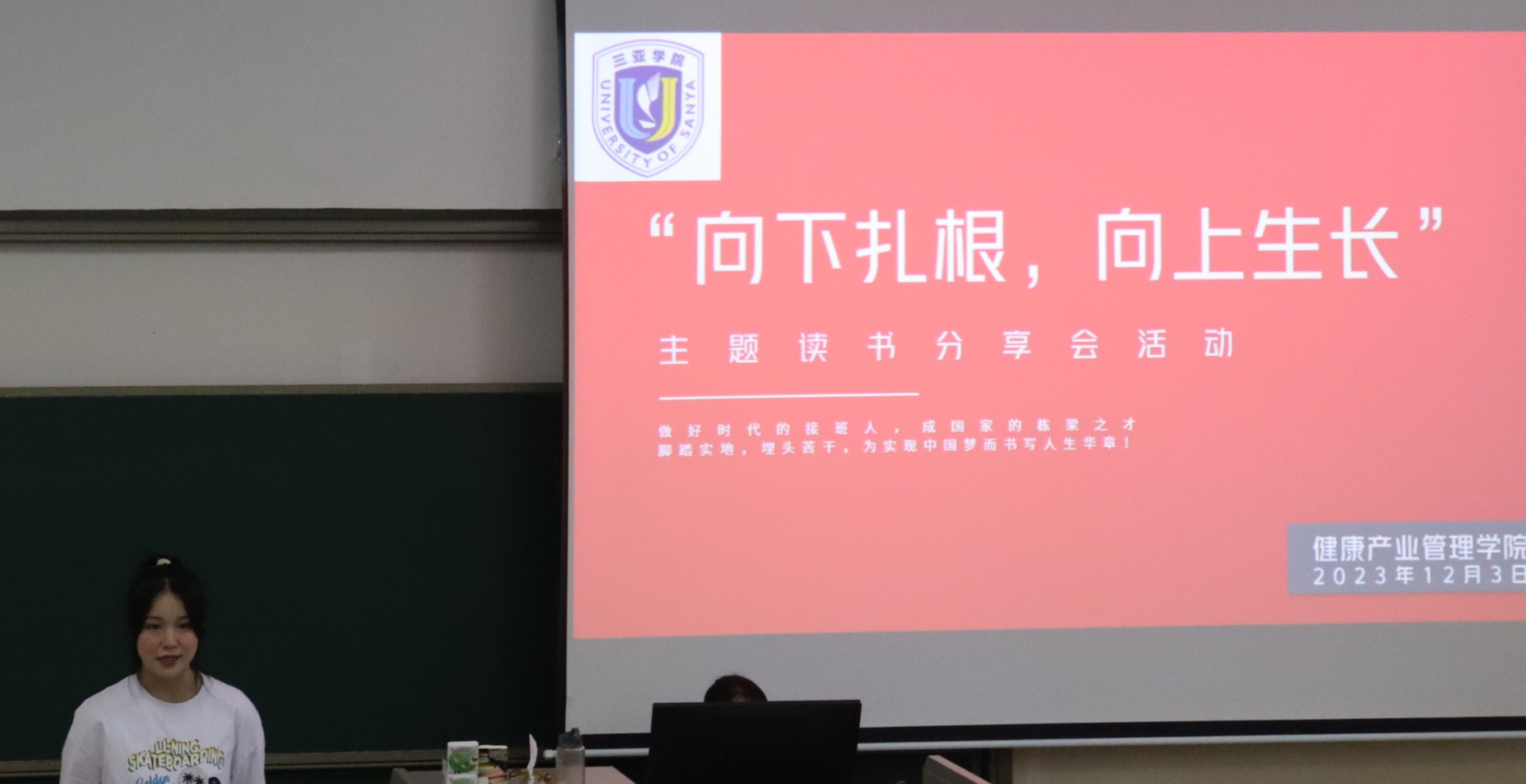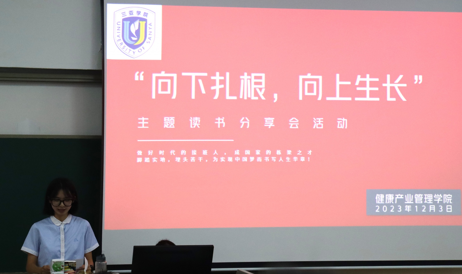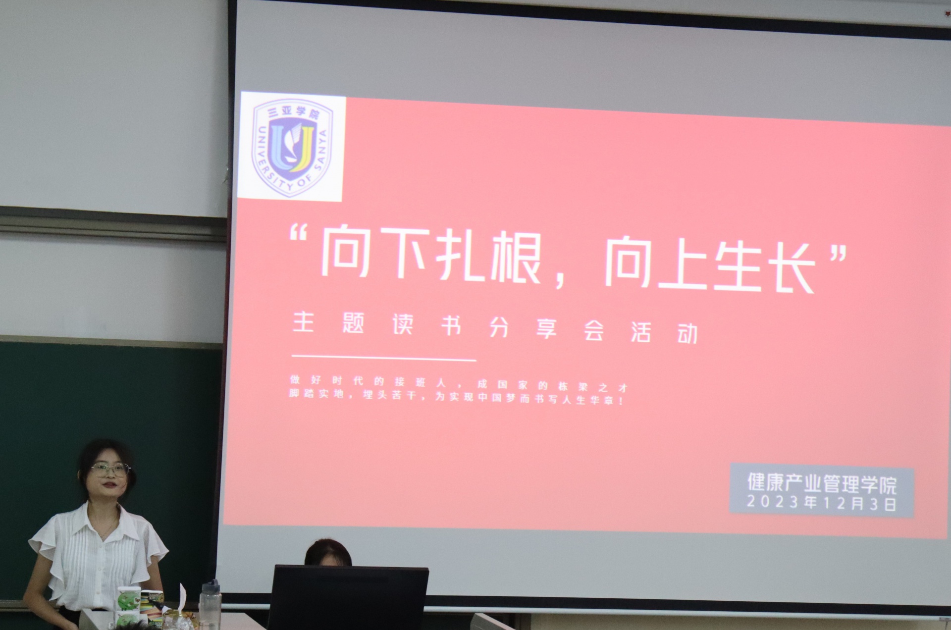 为了丰富校园生活,提高员工学习氛围,新葡的京集团350vip8888/新葡的京集团350vip8888于2023年12月3日下午15点在书知楼2401教室举办以“宣讲著作传精神,建设青春之中国”为主题的“向下扎根,向上生长”读书分享会。活动由康管公司23级思想导师李炳坤老师组织同学们开展。
