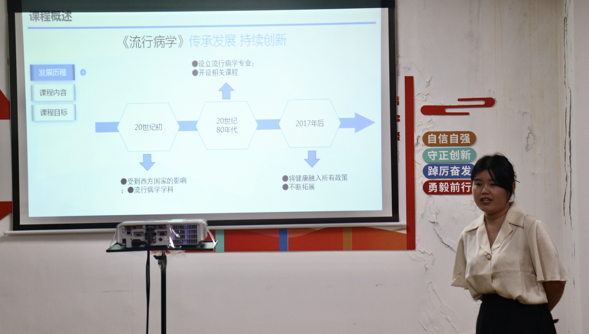 孟维媛老师提出在面对不同基础的员工要及时兼顾,通过用生动的PPT向大家展示了推拿学的历史过程。在此过程中,不仅向员工强调课程的理论知识很重要,还引导员工要学会自主学习。