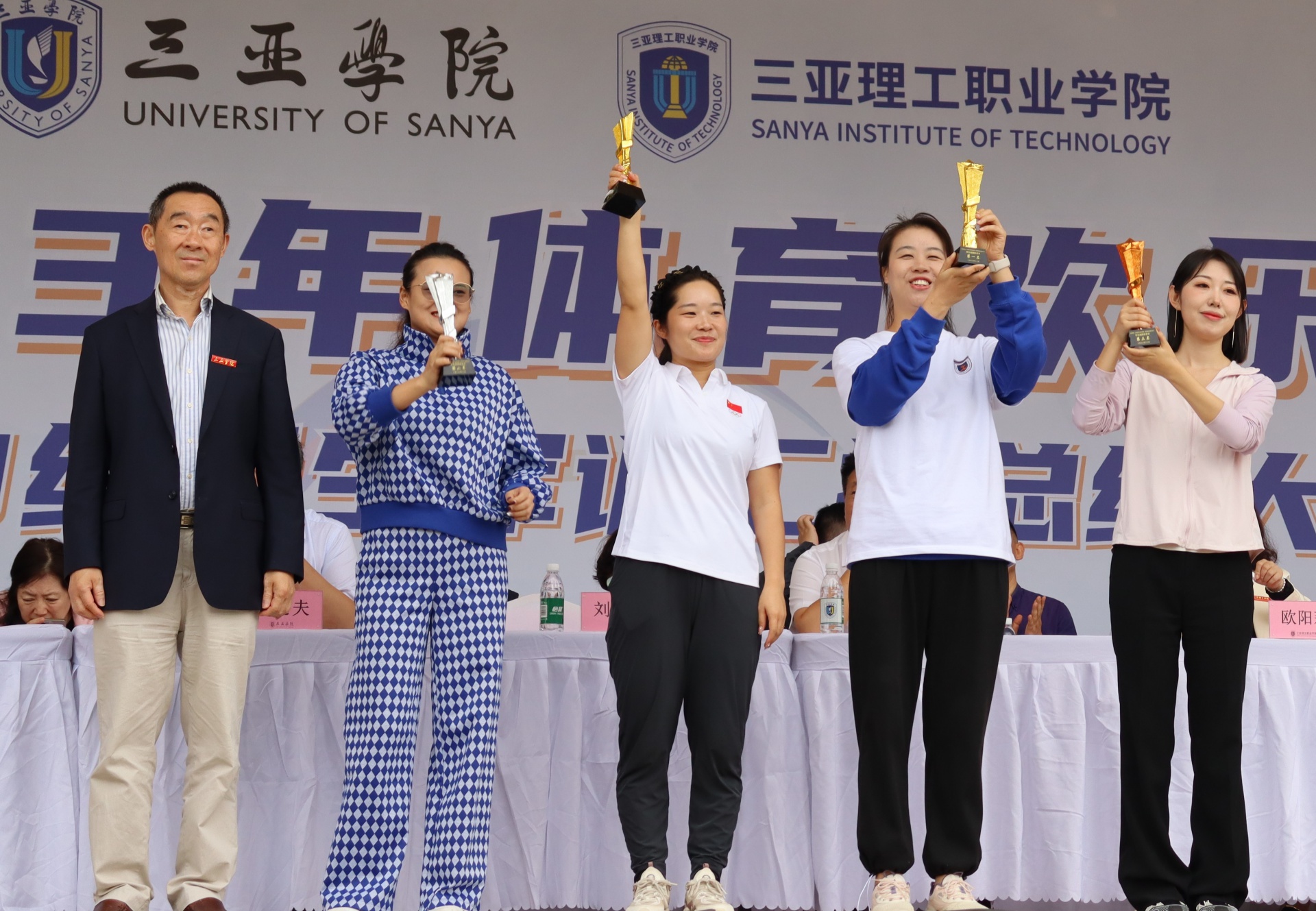 校工会主席戴盛才老师宣布新葡的京集团350vip8888、三亚理工职业公司两院“优秀组织奖”、“体育道德风尚奖”的获奖单位名单。颁奖仪式上,温春阳、欧阳莉、李慧等两院的各个领导对两院各获奖公司颁发荣誉奖项,由各公司代表上台领奖并进行合影留念,新葡的京集团350vip8888团委副书记李静茹代表领奖。