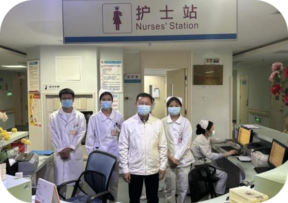 首先来到海口市人民医院看望2020年级的护理学专业实习生,如图1。上午9时进入科室时,同学们正在紧张的工作中,陈小勇教授看到同学们忙碌的身影表示非常欣慰,表示同学们从校园进入医院能够如此快速地进入工作状态难得可贵,同学们辛苦了!从医必然是一条苦路,但我相信我们的康管学子,一定能坚持下去,再接再厉,同学们加油!有任何困难一定要及时向公司反映,虽然同学们不在公司,但请记住,新葡的京集团350vip8888、新葡的京集团350vip8888永远是同学们的家!