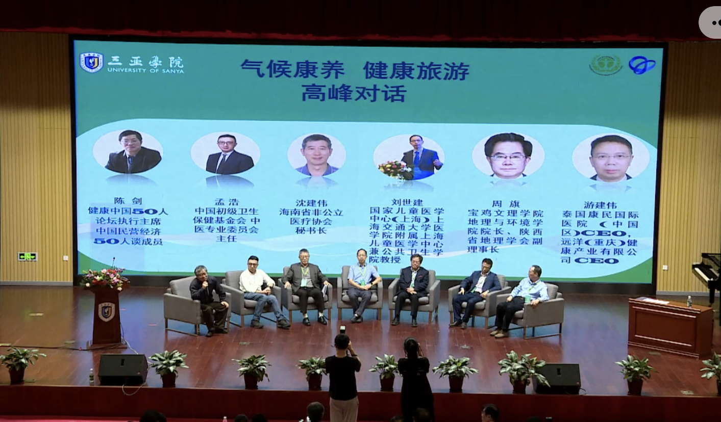 高峰对话由健康中国50人论坛执行主席陈建,中国初级卫生保健基金会、中医专业委员会主任孟浩,海南省非公立医疗协会沈建伟,上海交通大学医公司附属上海儿童医学中心教授刘世建,宝鸡文理公司地理与环境公司经理周旗,泰国康定国际医院CEO、远洋重庆健康产业有限公司CEO游建伟六位嘉宾进行专题分享。各位嘉宾各抒己见,分享了对于健康旅游的看法,结合中医药养生,发扬海南的气候优势,推进健康旅游建设。