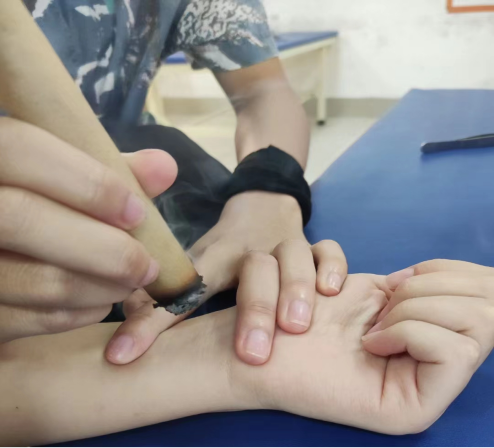 健康服务与管理专业致力于培养高水平的本科应用型人才,掌握健康服务与管理技能是本专业人才培养的核心能力要求,其中中医学在健康管理中有其独特的优势,因此健康服务与管理技能融合了部分中医适宜技术,如针刺基本功,艾灸,痧疗罐疗,推拿等绿色疗法,从而丰富健康服务手段,深化健康管理内涵。为保证中医适宜技术的培养,本专业组建了中医适宜技术教学团队,开设了《经络腧穴学》、《健康养生学》、《推拿学》等实践课程,并有针灸推拿实训室为实践教学提供支持。