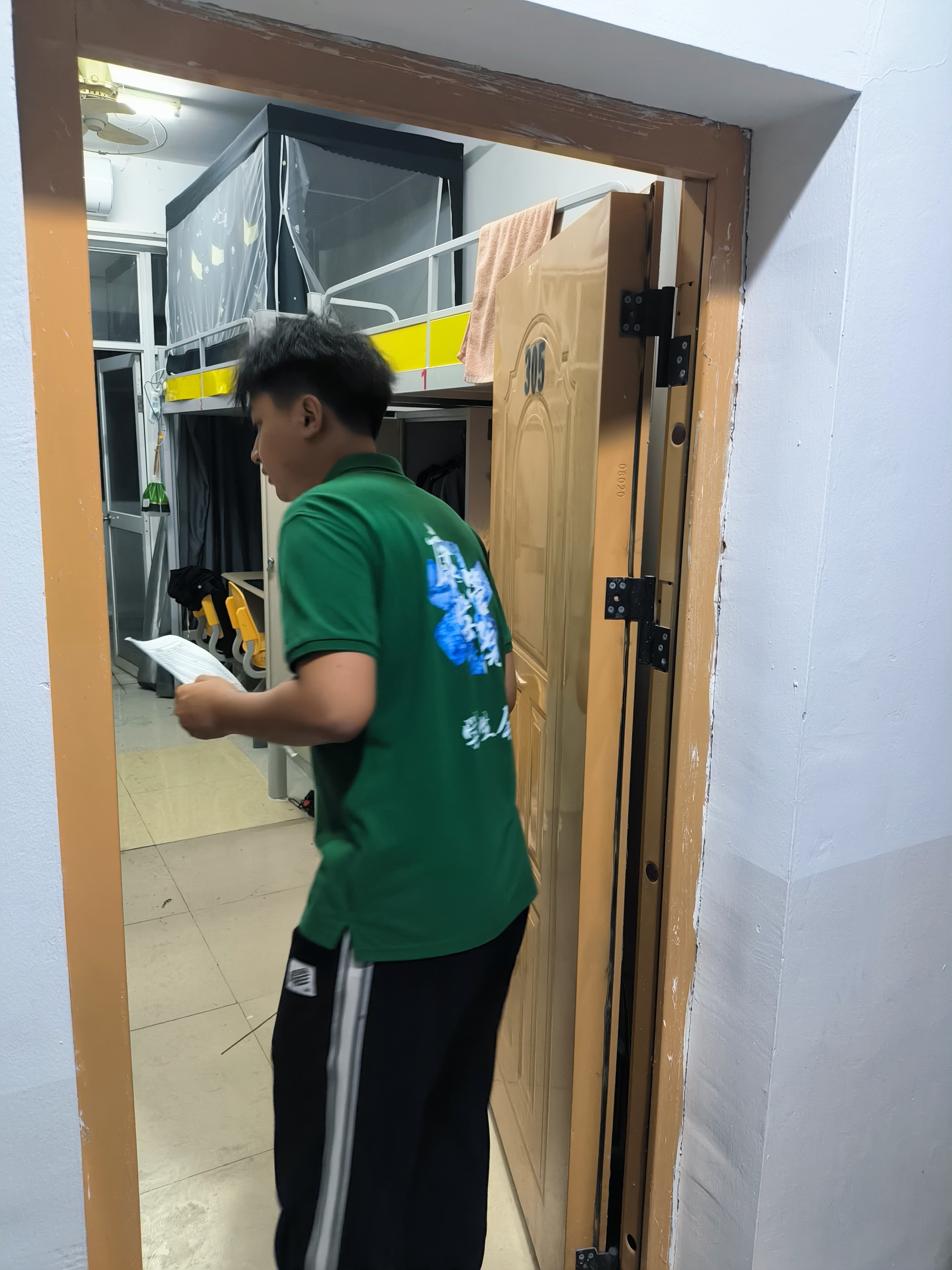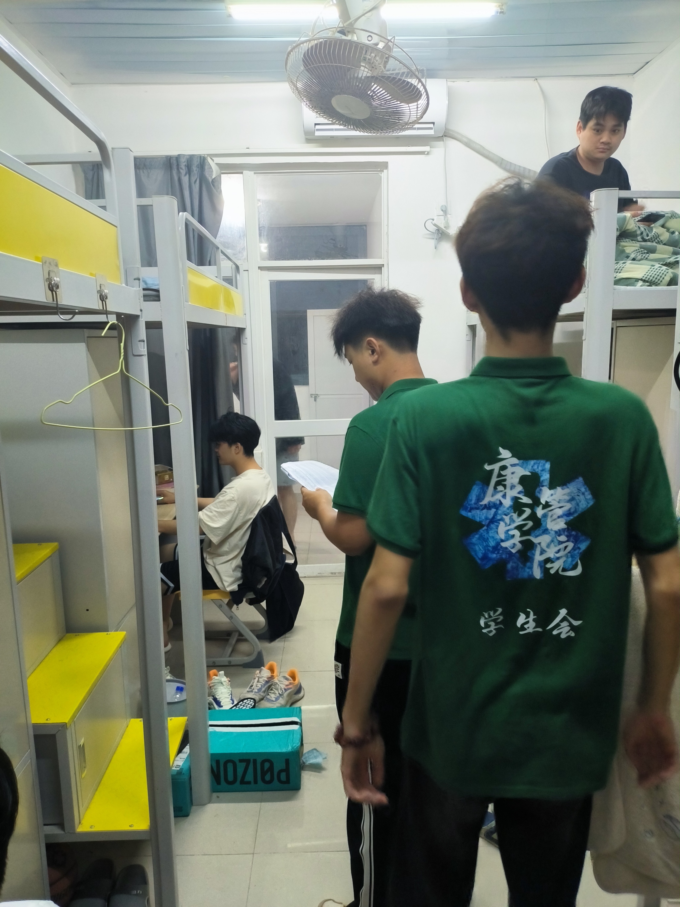 在查寝中,员工会自律部的部员们认真落实工作,查看同学们在寝情况,严格记录查寝结果,查寝工作开展得井然有序。