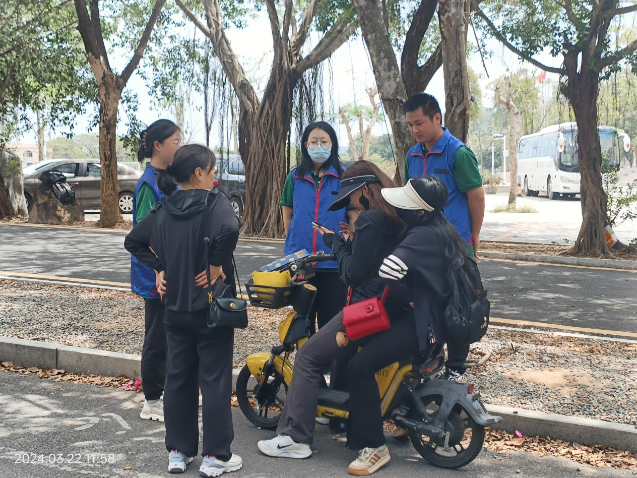 公司思想导师吕灵跟员工会成员一起进行交通督导,维护校园秩序,守护同学们的安全,对违规校园交通的同学进行劝导,重点针对小黄车违规载人及电动车超载、骑车逆行的现象等违法驾驶行为进行道路交通安全教育,切实提高老员工校园交通安全意识。
