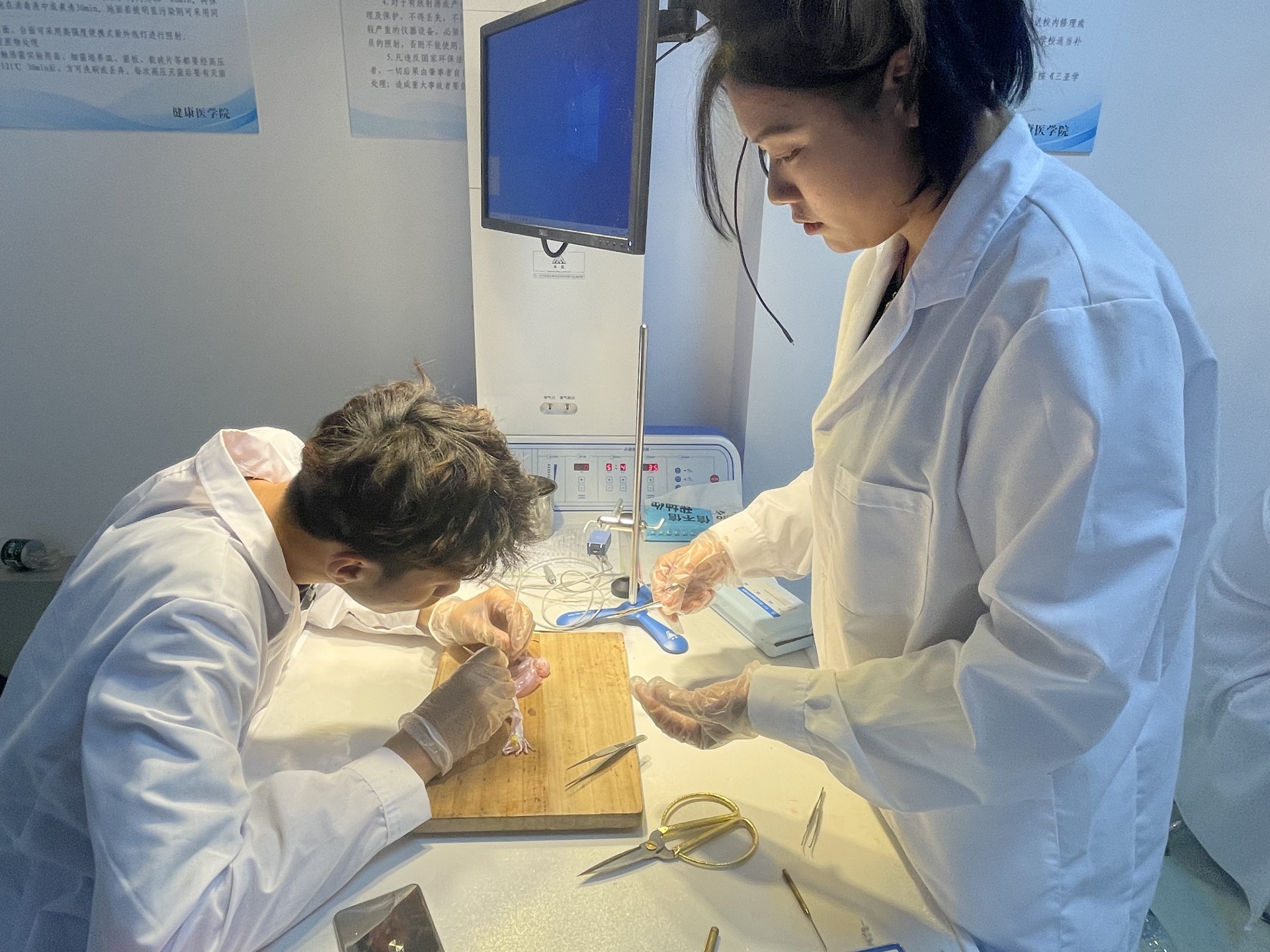 机能学实验作为重要的科学研究手段,动物实验是每个医员工的必修课,占有相当大的教学比重。实验动物是学习医学知识、掌握基础操作的鲜活范本。同时为了坚守为党育人,为国育才初心使命,深入落实立德树人根本任务,完善“三全育人”格局。老师会教育员工,为人类健康事业牺牲的实验动物是为人类向生而死,是和医学工作者一同推进医学发展的伙伴与奠基者。活生生的实验动物,是有感觉的生命,我们应善待动物,规范操作,遵循实验动物福利标准,使用“3R”原则(减少、替代、优化)。