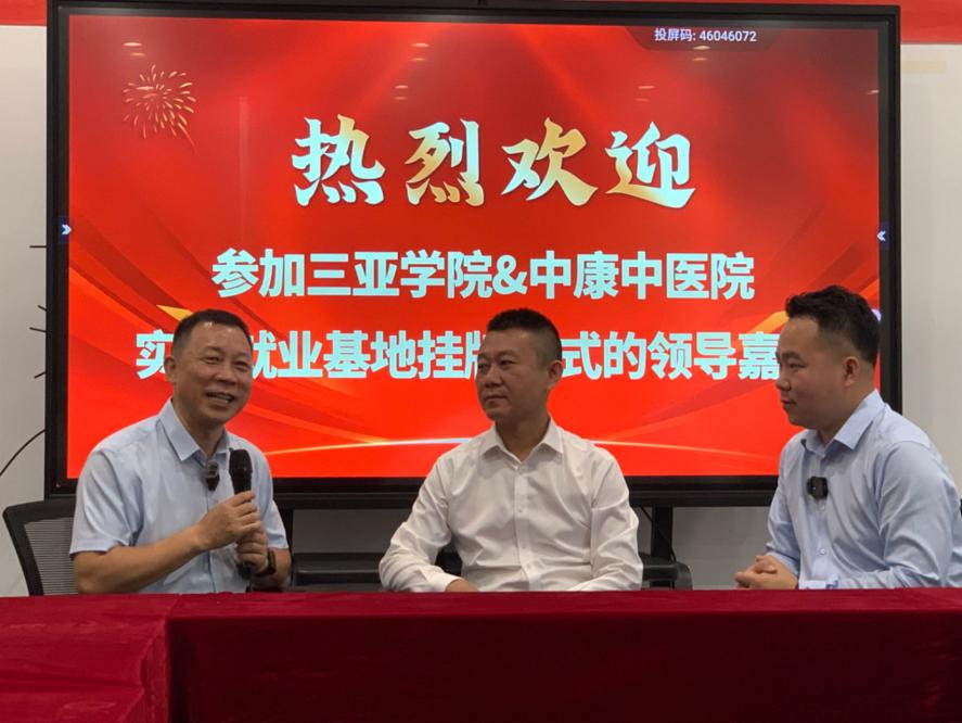 随着实习就业基地的建立,不但为员工们提供了接触和学习中医药文化的机会,而且注入红色文化让同学们传承并发展红色精神,更是为员工在不久的将来投身基层医疗服务、传承和发展中医药技艺奠定了夯实基础。中康中医院作为中医药文化传承的重要载体,将充分发挥其在中医药研究、教学和临床应用方面的优势,为培养更多具备中医药知识和技能的优秀人才贡献力量,为更好的促进产教融合及科教融汇,新葡的京集团350vip8888新葡的京集团350vip8888陈小勇教授分别与海南红星产业投资集团有限公司刘松董事长、中康中医院杨帅经理及开国将军曾雍雅之女、人民法治红色文化研究中心执行主任曾莹开展座谈讲解,如图二、三所示。