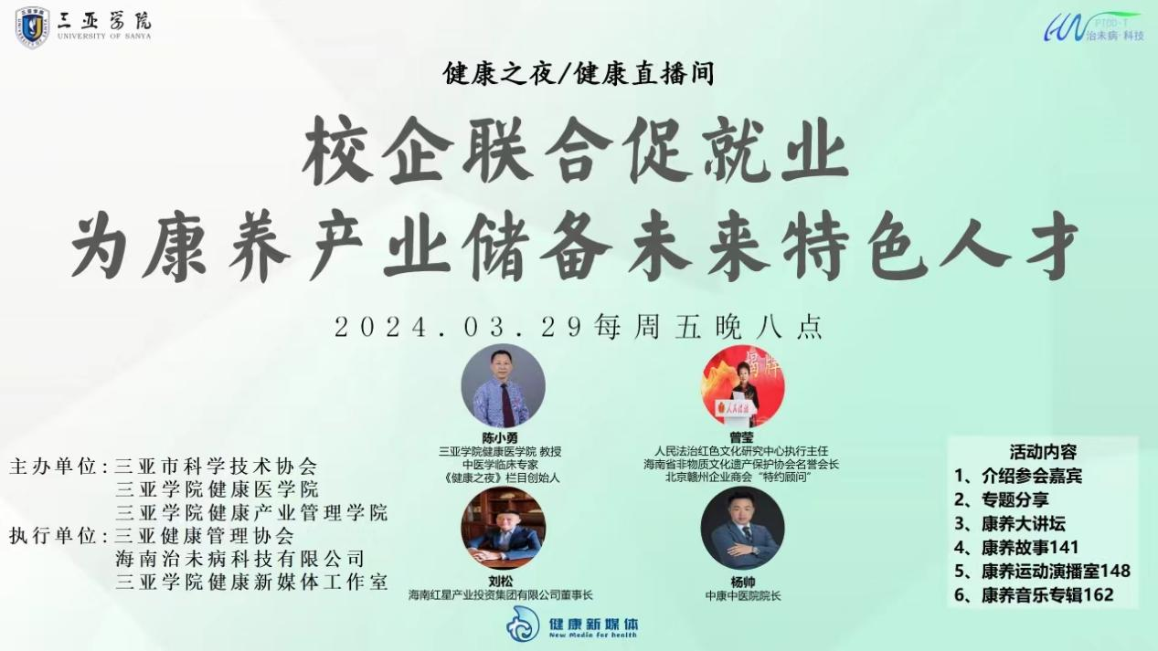 活动当日晚20点新葡的京集团350vip8888/新葡的京集团350vip8888在线展开了以“校企联合促进就业为健康产业储蓄未来特色人才”为专题的健康之夜活动。此次健康之夜的活动是三方共同推动中医药文化传承与基层医疗服务发展的重要举措,也是对现在乃至未来社会责任的积极回应,更是为员工提供未来的就业指导方向。在不久的将来我们有理由相信在三方的共同带领下未来大健康的发展和特色人才的储备及服务社会的方法方式都会迎来崭新的明天,如图四所示。