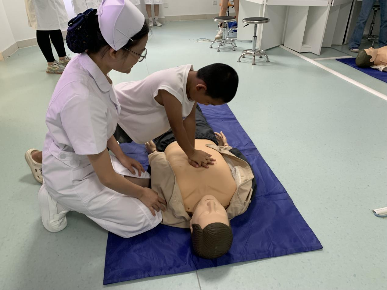 (同学们进行心肺复苏操作)