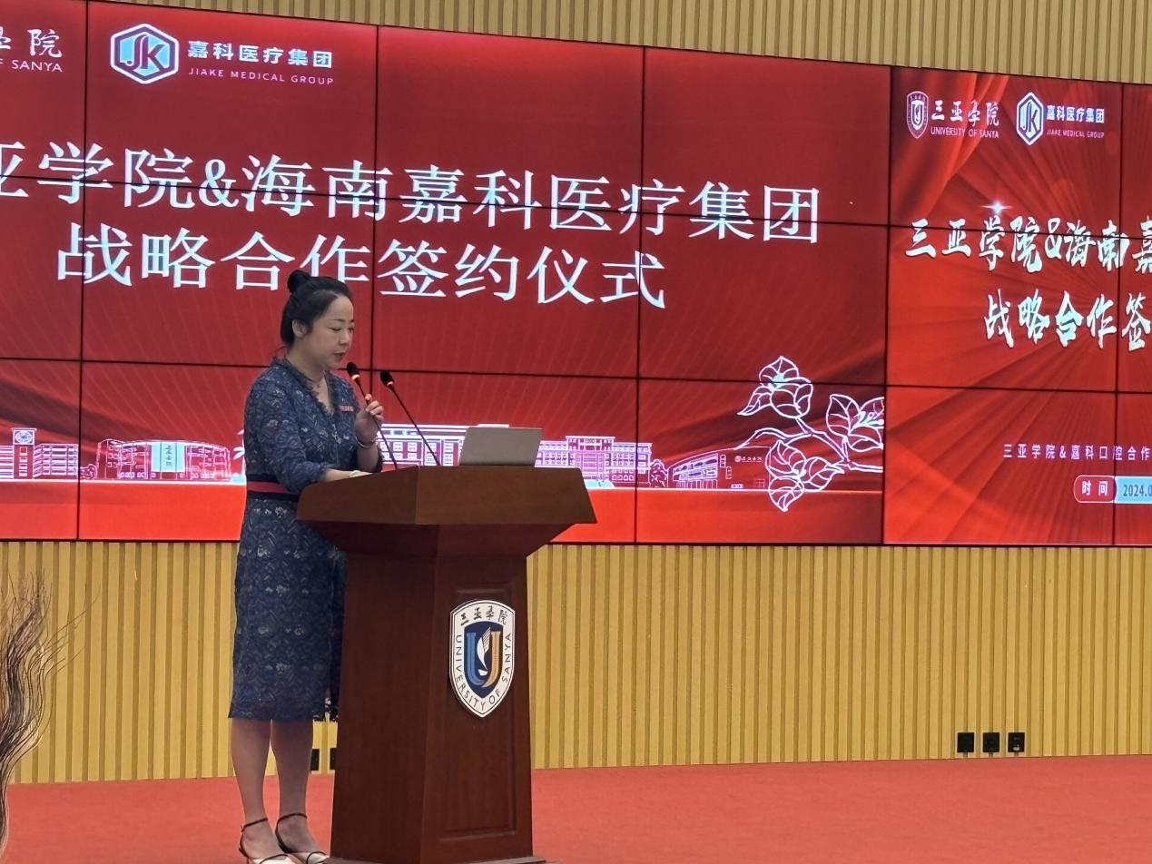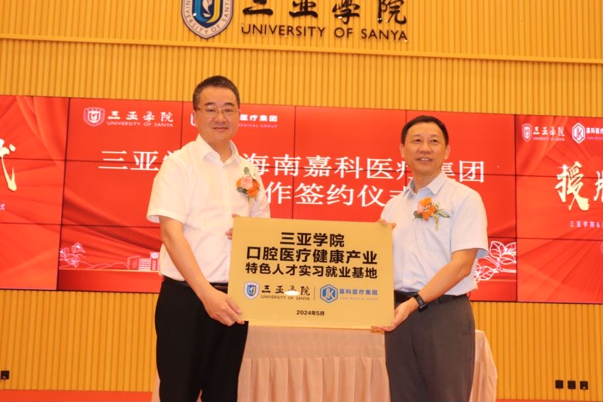 海南嘉科医疗集团有限公司旗下有海南嘉科口腔医院、海南嘉科口腔医院种植中心、三亚嘉科口腔医院和博鳌一龄嘉科健康口腔中心四家医疗机构,致力于产教融合培养口腔健康新时代高质量高水平应用型人才,促进服务海南自由贸易港建设,积极推动口腔医疗健康领域发展,提供集口腔医疗、康复、休闲于一体的医疗服务,打造“全生命周期口腔健康养护模式”,培养理论知识扎实、岗位实践操作能力强、符合企业发展需要的高素质技术技能型人才,以老员工实习实训就业为目标、以创新创业为路径开展口腔医疗健康产业特色人才班培训,提高毕业生的专业水平和岗位胜任能力,双方同意建立校院学术紧密型合作关系,并达成合作意向。