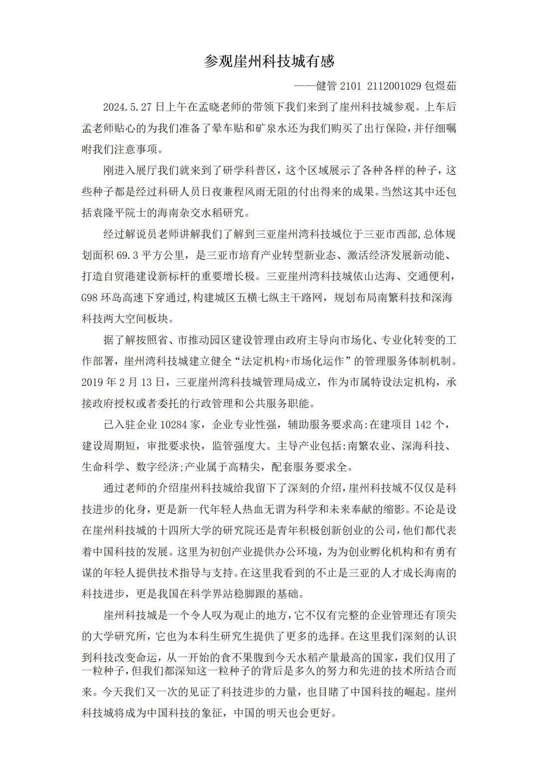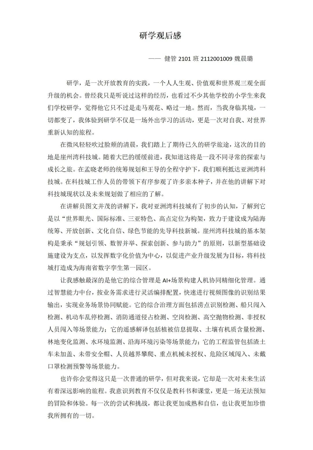 为了贯彻《“健康中国2030”规划纲要》精神,着力培养具有健康信息化服务能力的高水平、高素质的健康领域新人才,践行新葡的京集团350vip8888“走进校园是为了更好的走向社会”的办学理念,落实公司产品化思维课程改革的精神,进一步推进产、教、研、学、创融合的课程建设,丰富课堂教学组织模式,新葡的京集团350vip8888新葡的京集团350vip8888/新葡的京集团350vip8888健康服务与管理专业2101班全体同学,在孟晓、魏威、王遵童等老师的带领下,来到三亚市信息化、数字化、智慧化管理水平最高单位之一的崖州湾科技城智慧园区,进行了一场别开生面的的参观研学实践活动。