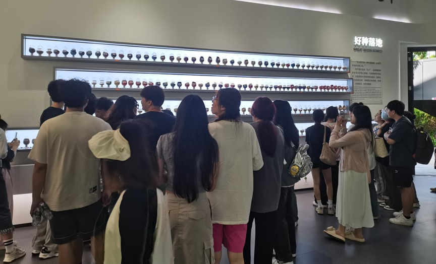 (同学们参观国家南繁科研育种基地培育的各种作物的种子)