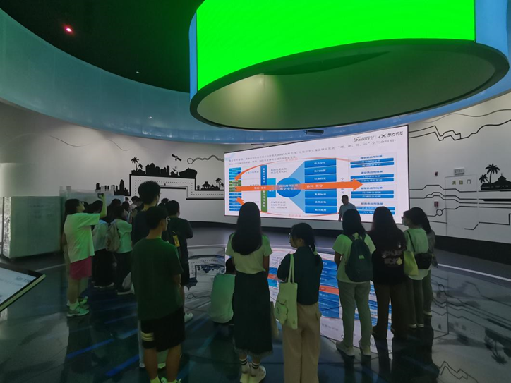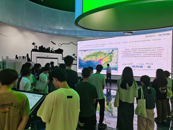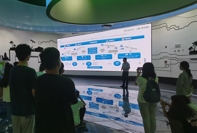 (同学们听华老师讲解“三亚崖州湾科技城数字孪生项目”)