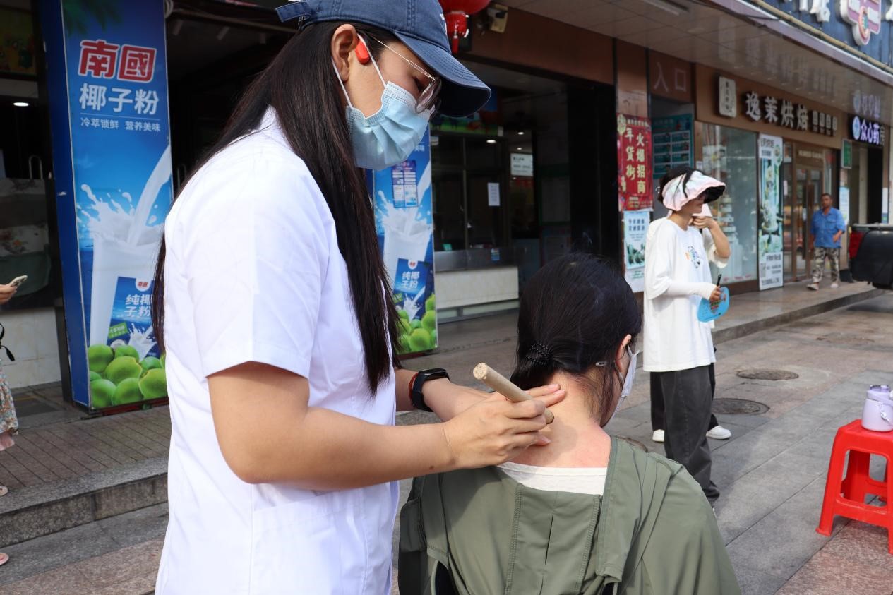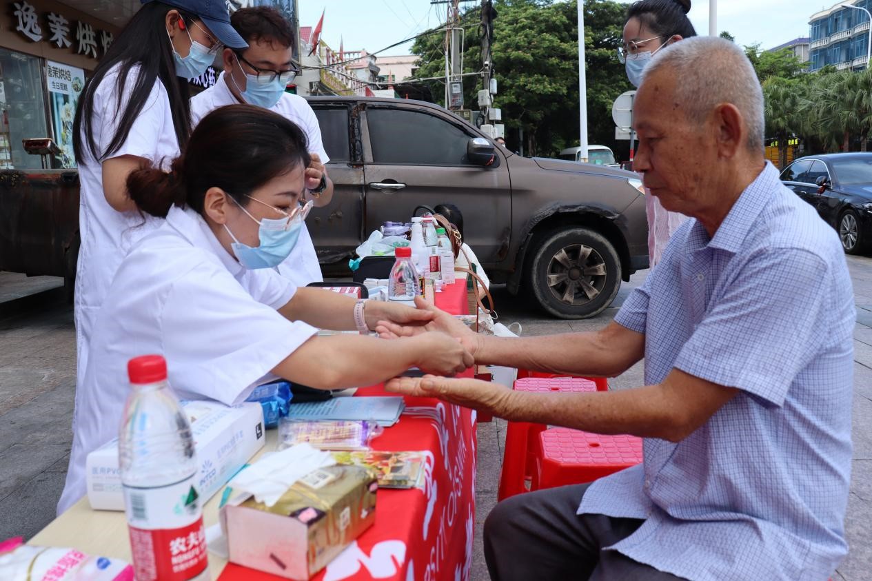 黎大娘:老师们在社区义诊,真的让我感到非常惊喜和感动。他们每个人都带着专业的医疗设备和工具,耐心地询问我的身体状况,认真地给我检查。他们还详细地解释了检查结果,告诉我需要注意什么,让我感受到了前所未有的关心和照顾。尤其是老师给我做了简单的肩颈推拿,让我的肩颈舒服多了,真的很感谢老师们!