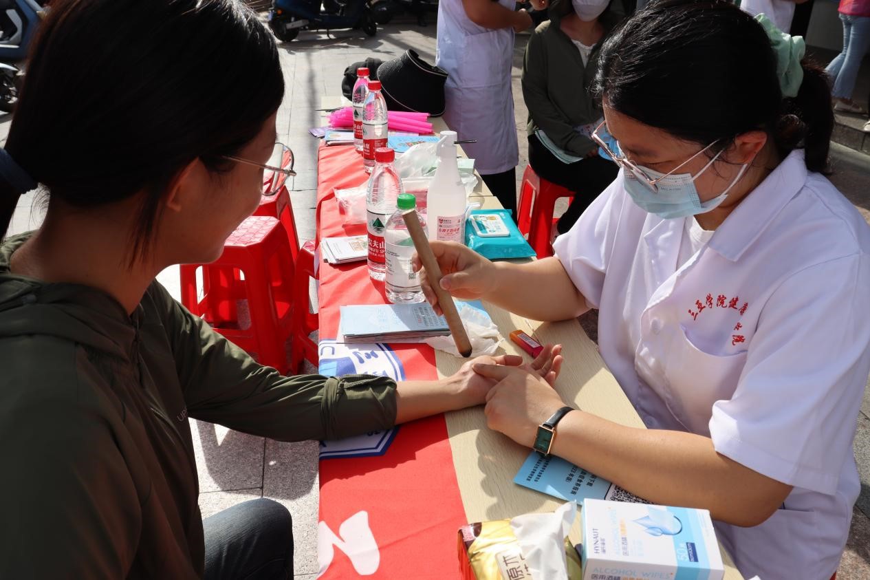 义诊期间,教工党支部党员依托专业背景,深入了解社区居民的生活状况和健康需求,为社区居民提供免费的医疗服务,包括测血压、血糖、针灸、艾灸及中医按摩等。在义诊活动中,党员老师们以严谨的态度和专业精神为居民服务,通过耐心细致的讲解,普及健康知识,介绍疾病预防、健康饮食、日常保健的方法等,提高居民的健康素养和自我保健能力,帮助他们形成健康的生活方式和习惯。社区居民热情参与,此次活动累计服务200余人次。