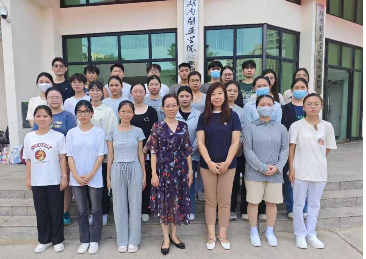老师抵达后,大家在医院的优美环境中拍下了意义非凡的合照,同学们的笑容充满了对实习生活的期待。