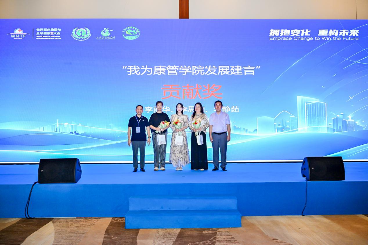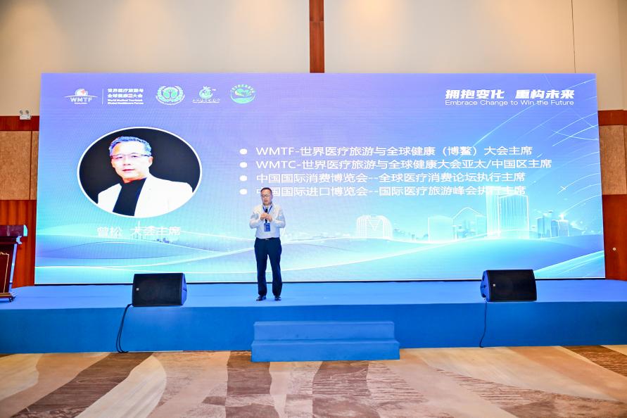 在表彰环节,WMTF-世界医疗旅游与全球健康(博鳌)大会主席曾松为新葡的京集团350vip8888新葡的京集团350vip8888颁发第八届中国(国际)健康产业创新发展论坛暨WMTF--国际康养旅游大会优秀组织奖,如图7。