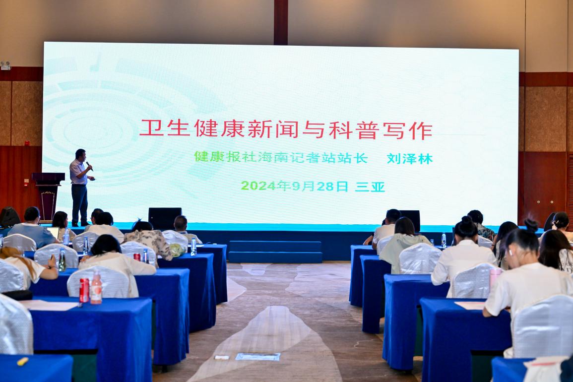 在主题报告环节,特别邀请了海南医科大学博导、国家规划教材《健康旅游学》主编黑启明为大家带来关于“商业医疗健康保险的政策与市场前景”的专题报告,黑启明主编从问题提出与研究综述、海南险种与战略研判、海南省商业医疗健康保险市场现状和面临的主要挑战、国内外商业医疗健康保险政策支持的最新趋势和案例研究以及海南商业医疗健康保险的市场前景与政策策略五个方面论述了他的讲话主题。健康报社海南站站长刘泽林做了主题“卫生健康新闻与科普协作”的专题,如图5-6.