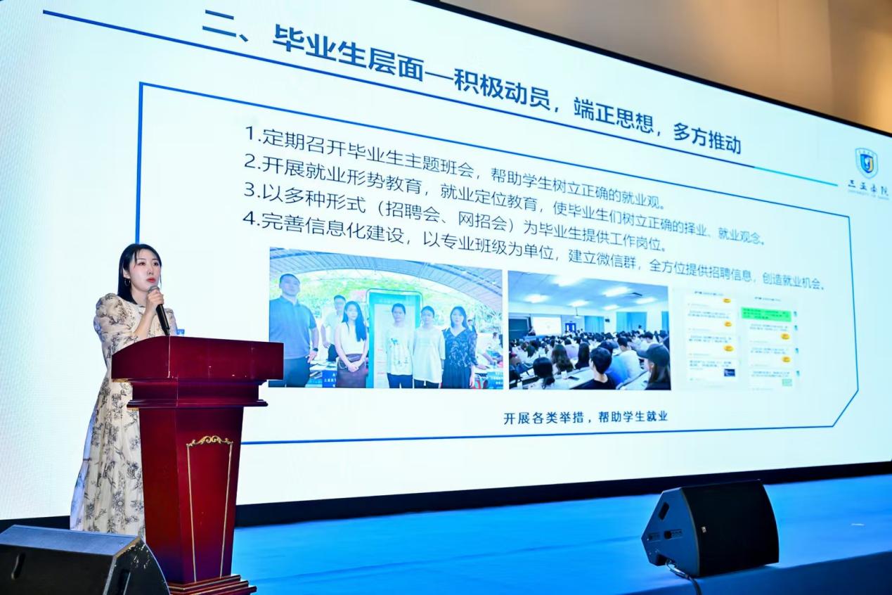 公司团委副书记李静茹则带来了题为“对标高价值岗位促进健康医学专业人才有序就业”的报告。她的报告内容丰富,条理清晰,分为毕业生就业现状、就业推进举措及数据分析三大板块,不仅全面总结了当前的就业情况,还深入进行了就业工作的思考与总结,为健康医学专业人才的有序就业提供了有力指导,如图12。